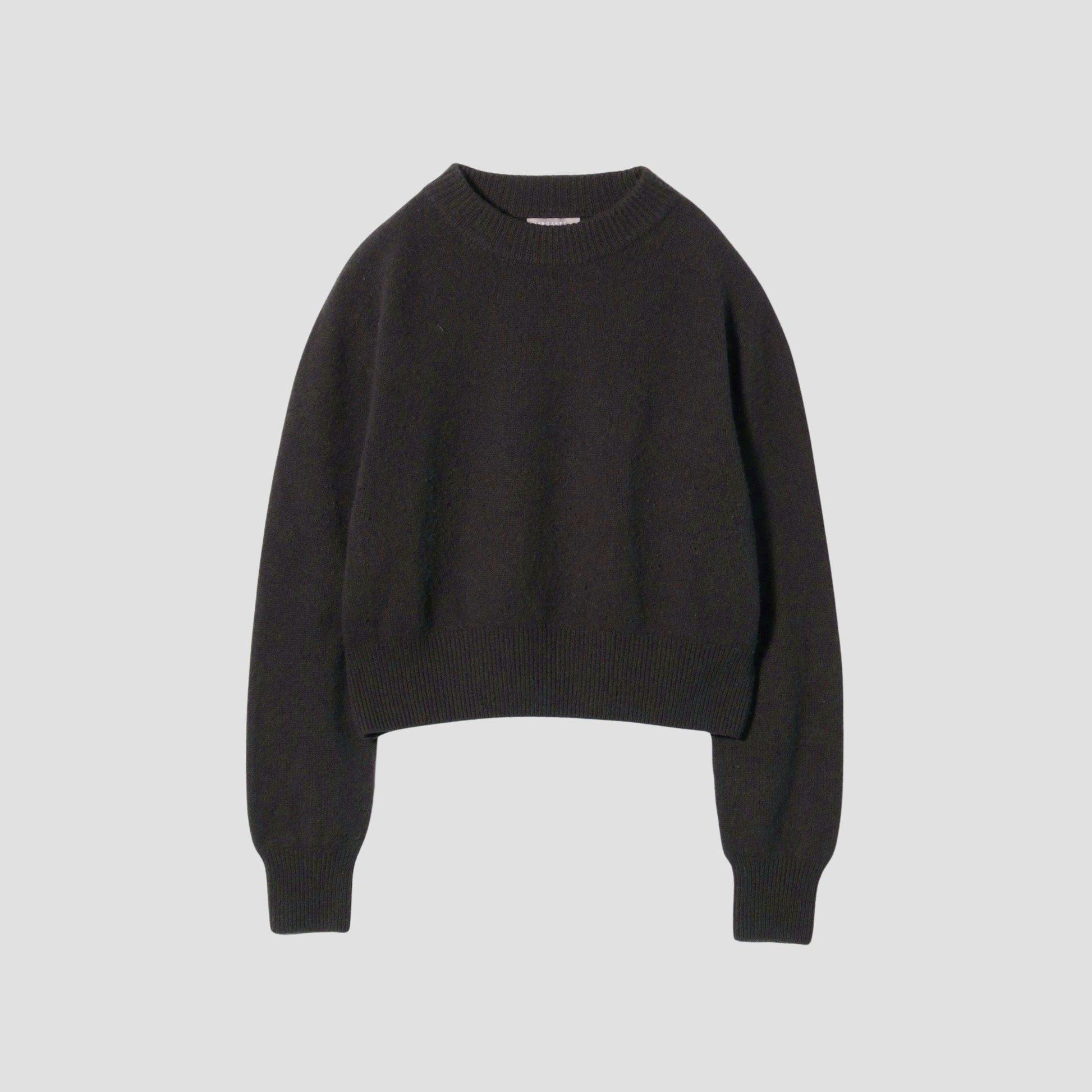 ラムズウールにカシミヤをブレンドしたバルキーで柔らかさのあるニット。ワイドな身幅、やや短めの着丈がリラックスさを感じさせるデザイン。