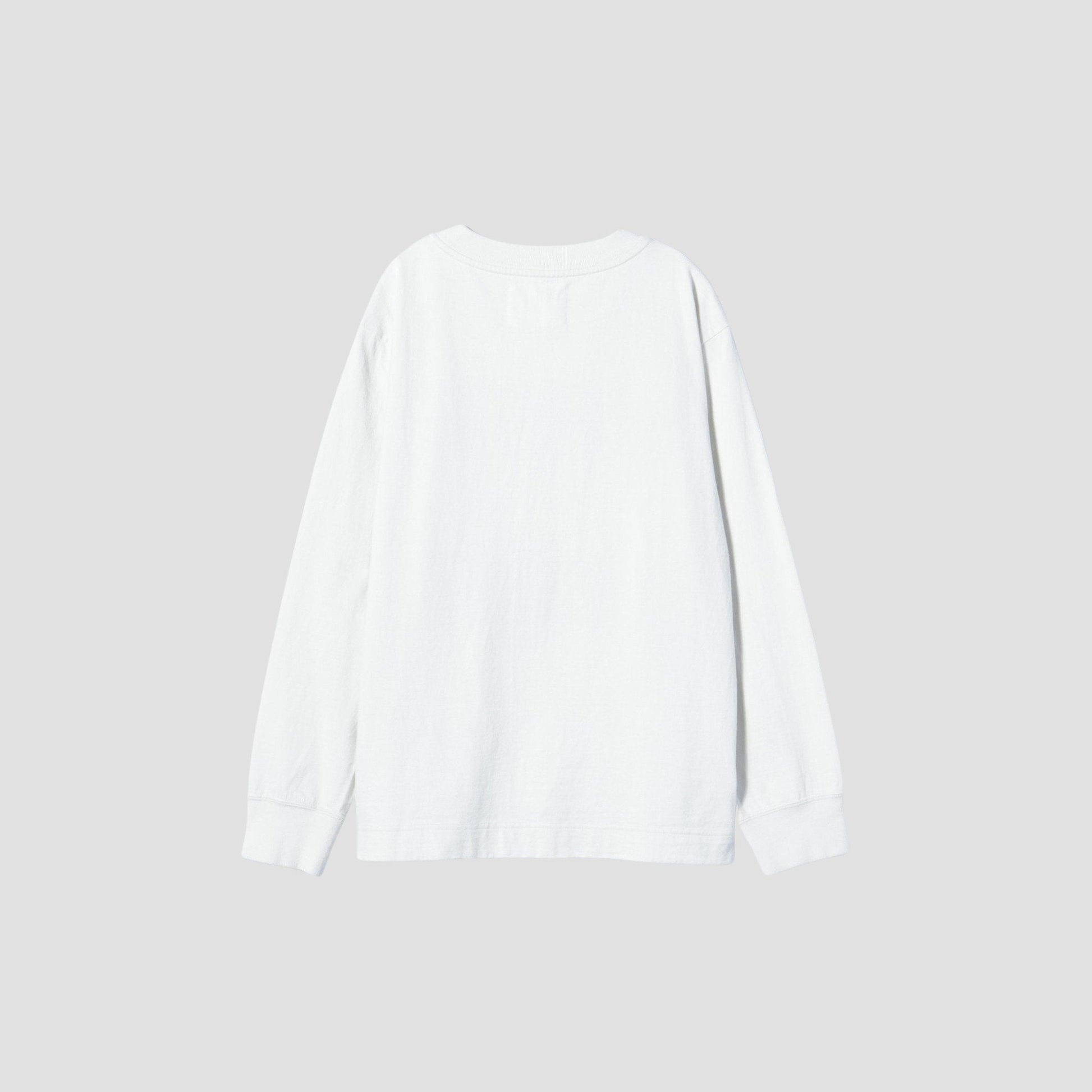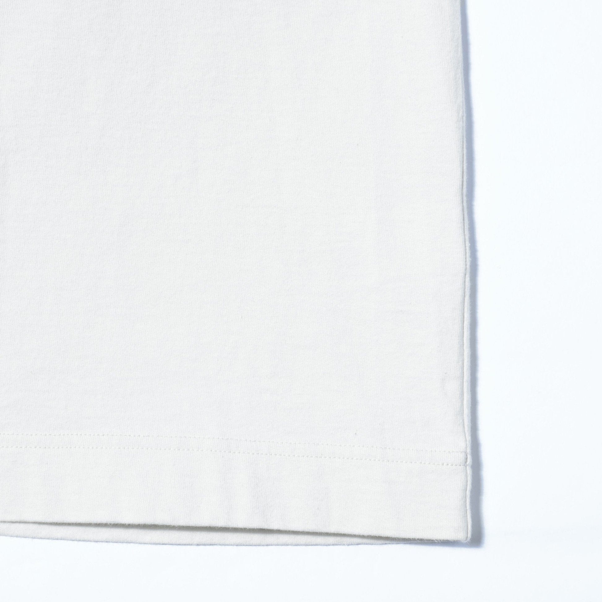 ドライタッチでコシのあるコットン素材のジャージー。紡績にこだわったタフな表面と、仕上げに製品洗いを施すことで馴染んだプリントがヴィンテージ感をプラス。程よいサイズ設計で、重ね着と一枚着のどちらでも存在感のあるシンプルなシルエット。