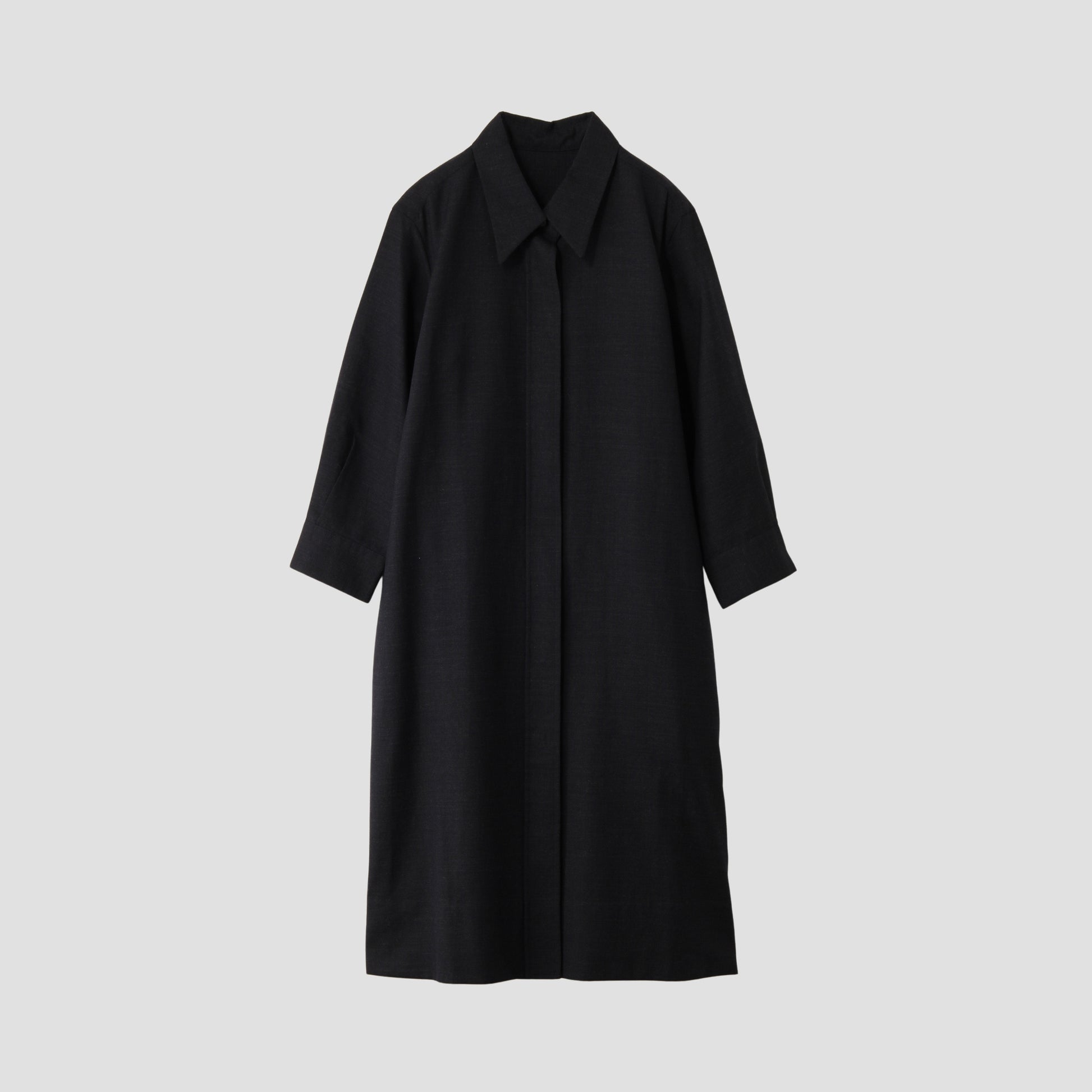 経糸にウール、緯糸にリネンとウールを交互に使った素材のシャツドレス。