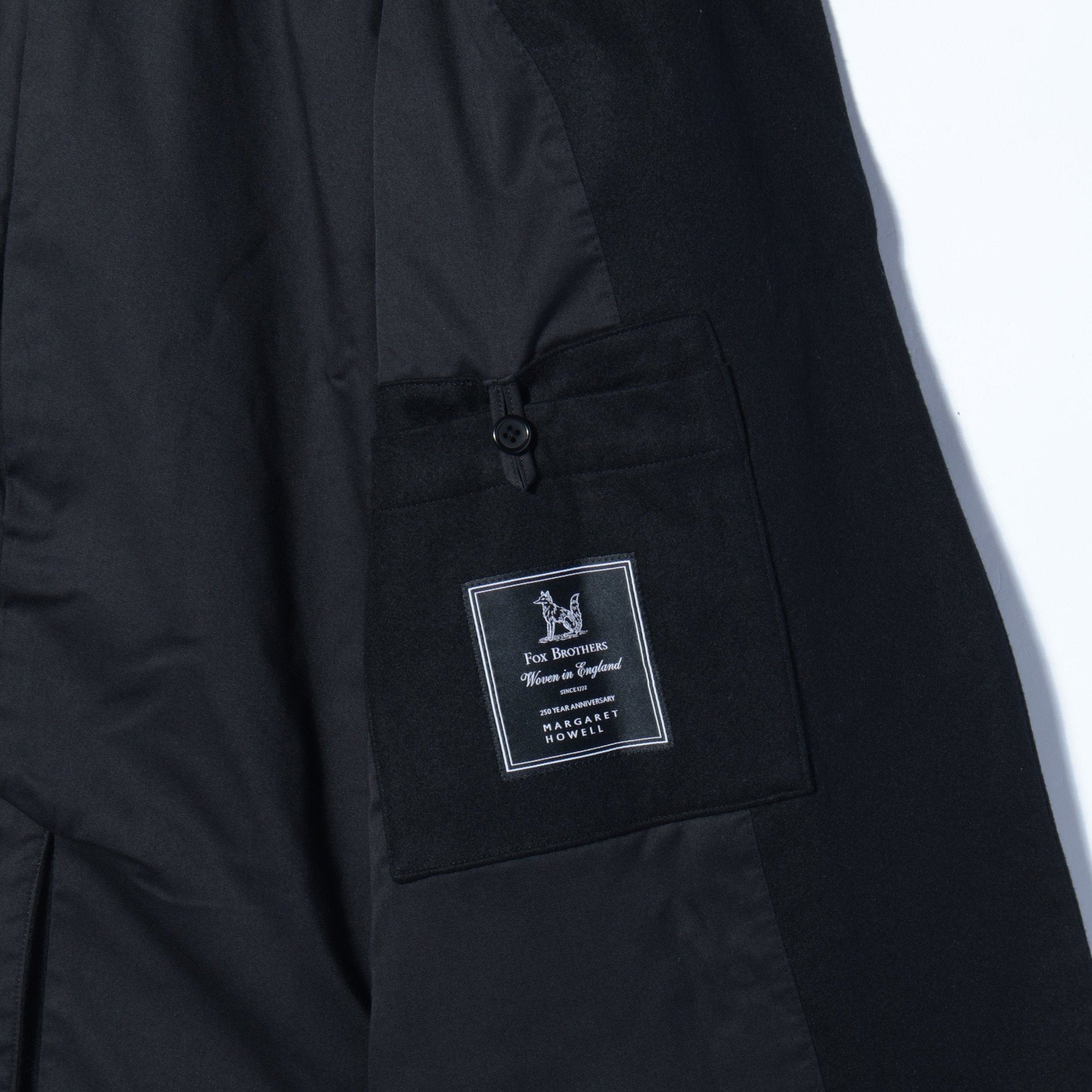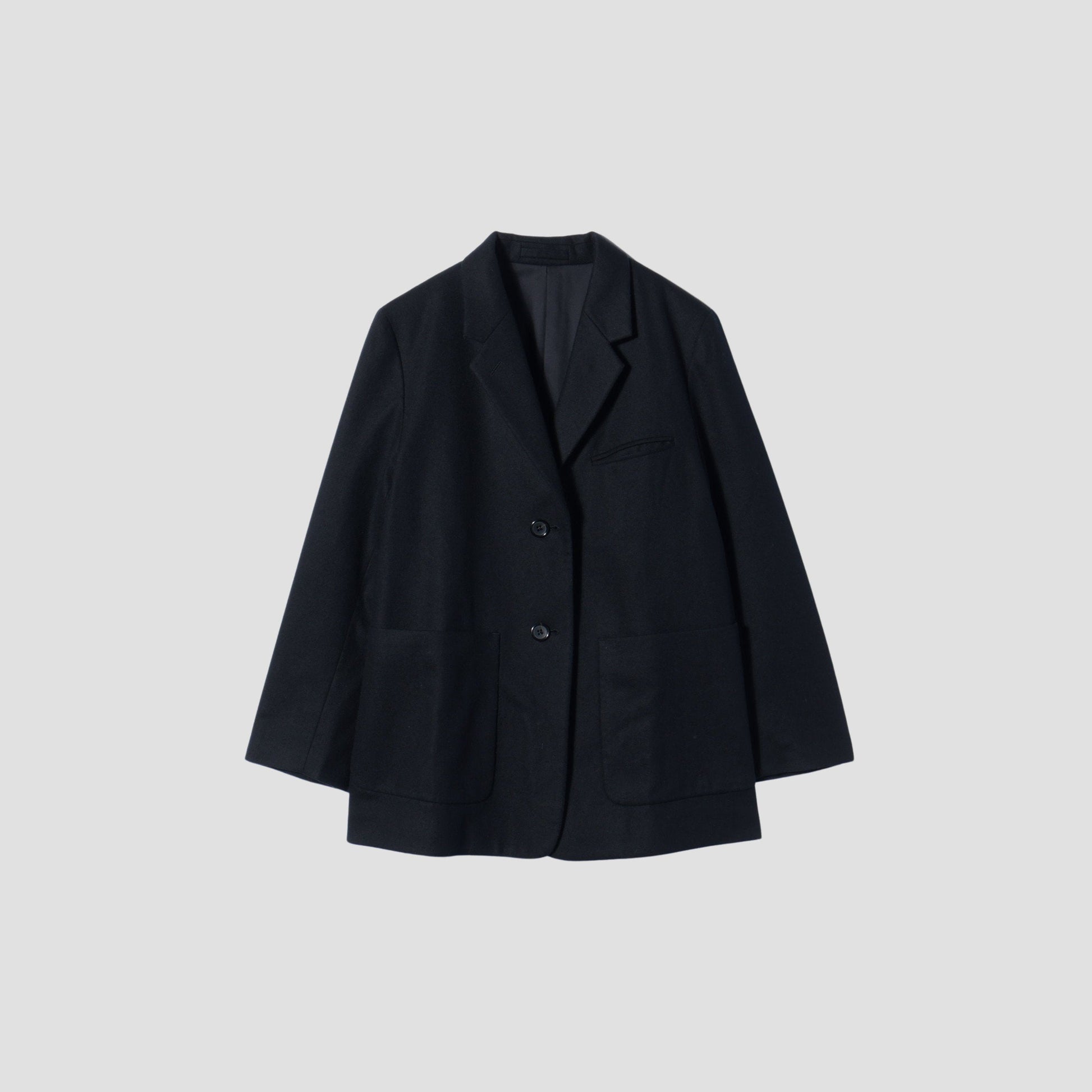 FOX BROTHERS社製のフランネル素材を使用したジャケット。生地そのものの両面にブラシをかけることで、柔らかな感触と毛羽立った表面感が作り出されている。胸に両玉縁ポケットを配したデザインで、程よいリラックス感のあるアイテム。