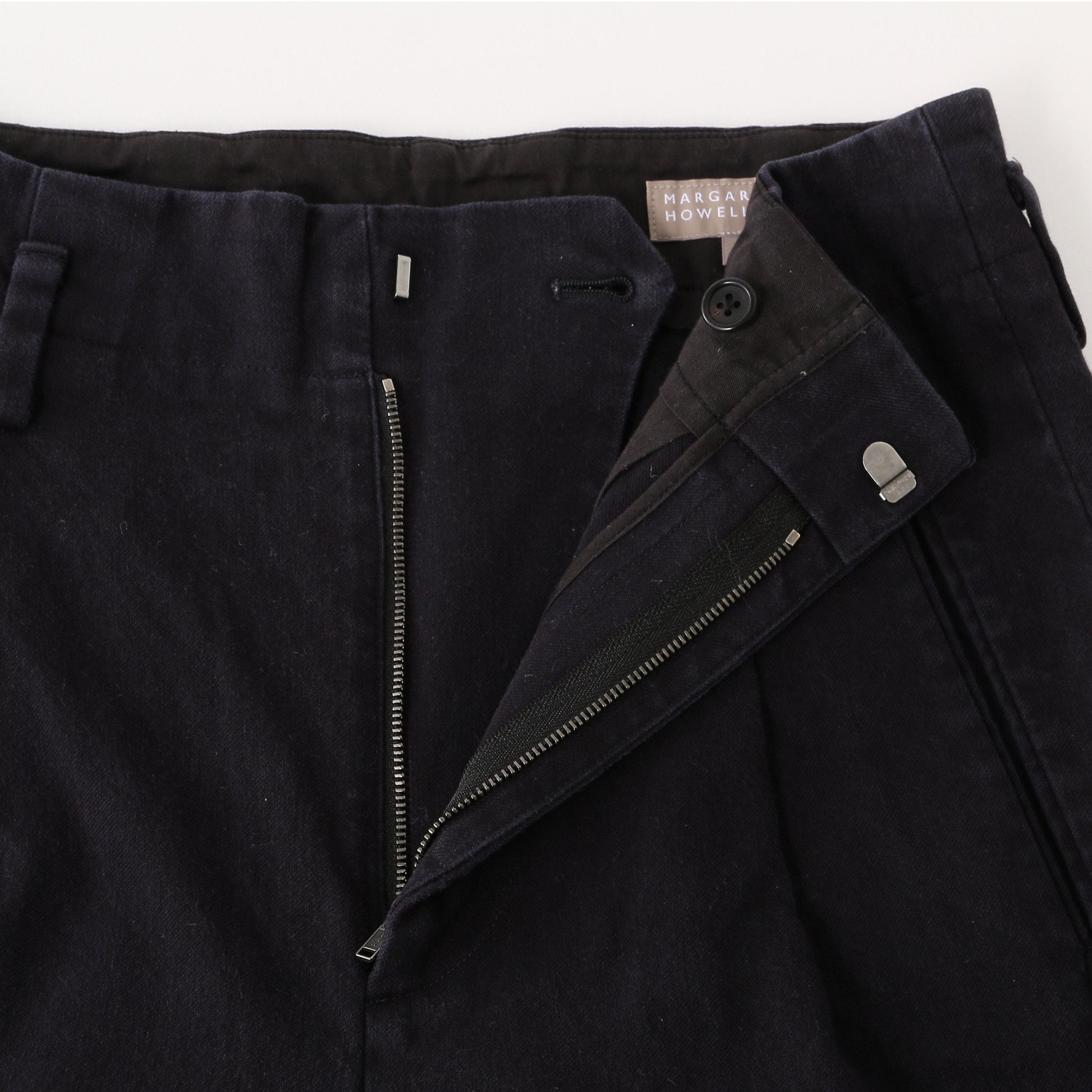 コシのあるコットン素材を使用したトラウザーズ。