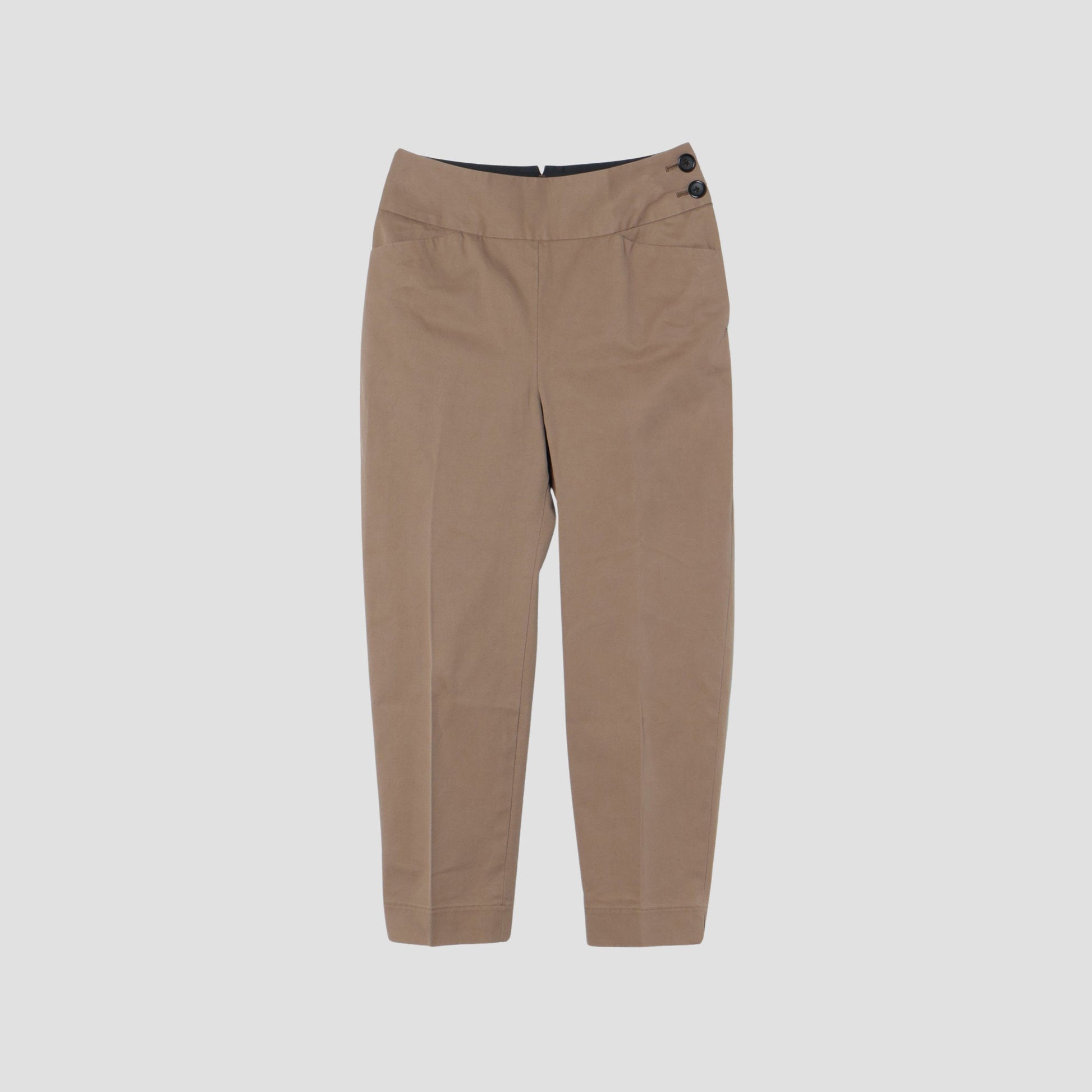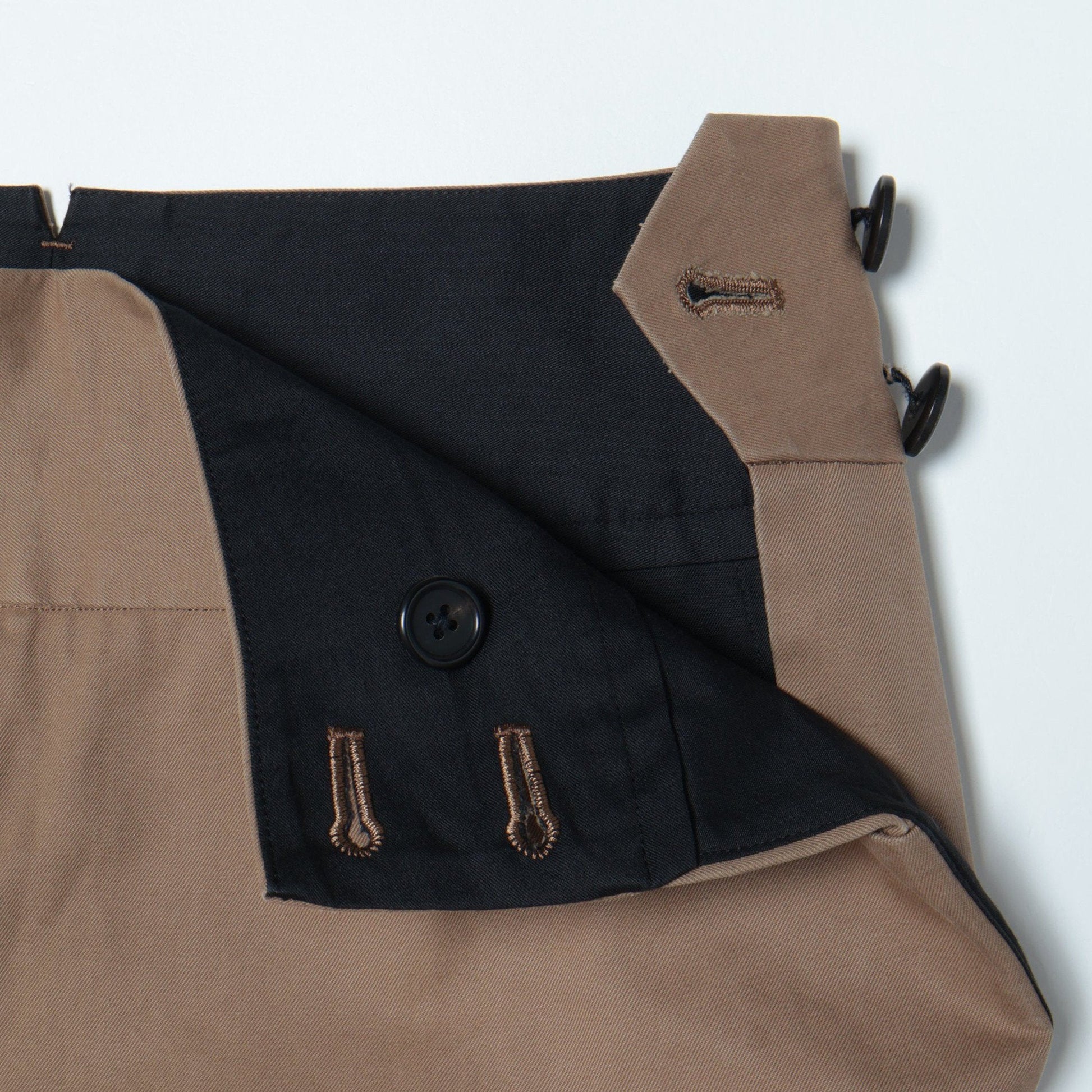 張りとコシがありつつも、柔らかさのあるコットン素材のトラウザーズ。