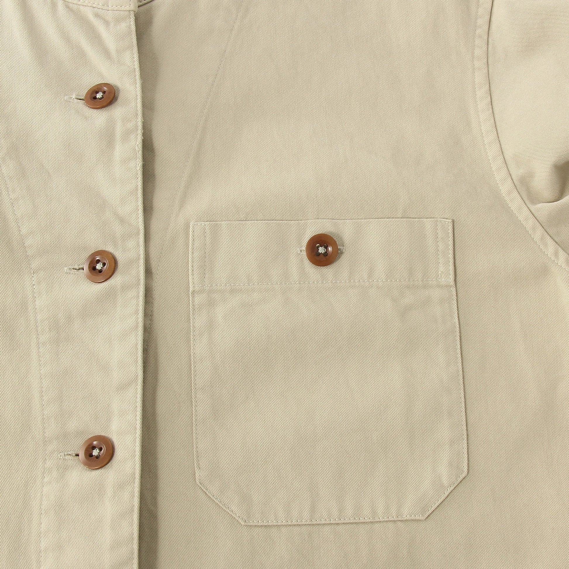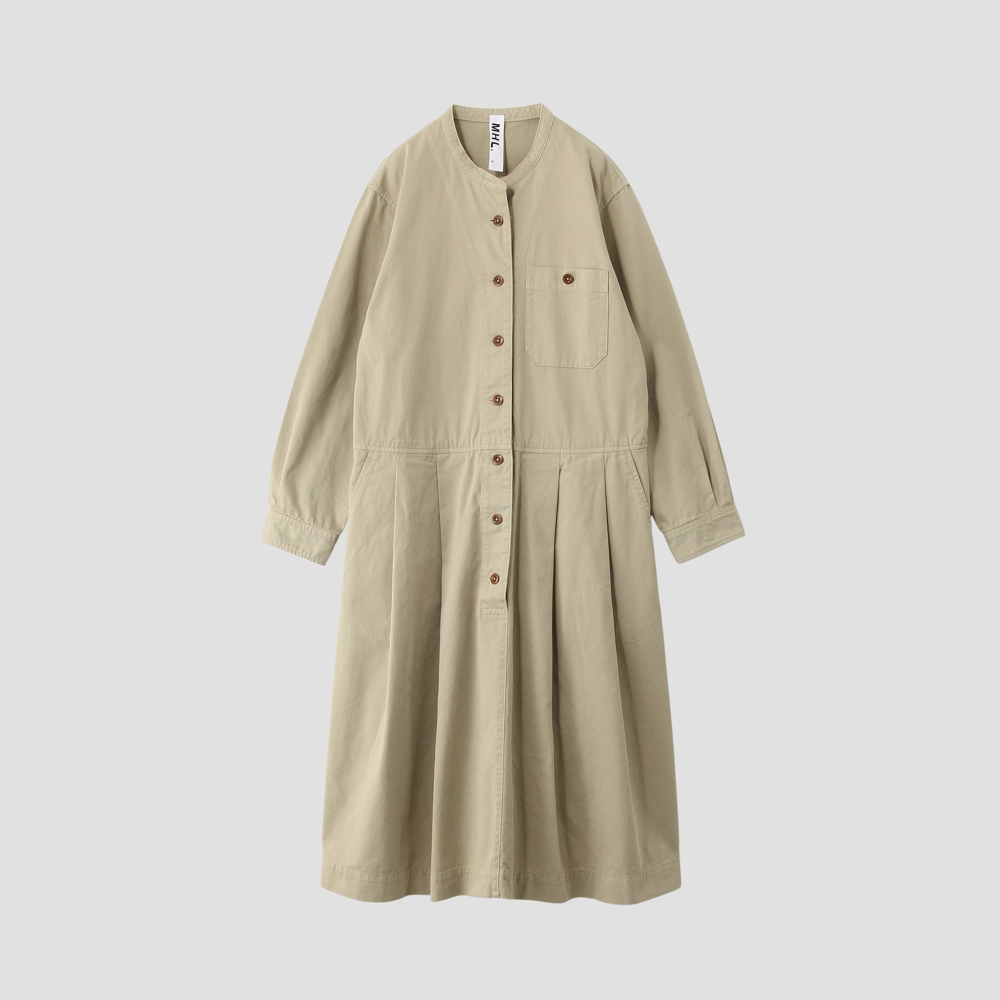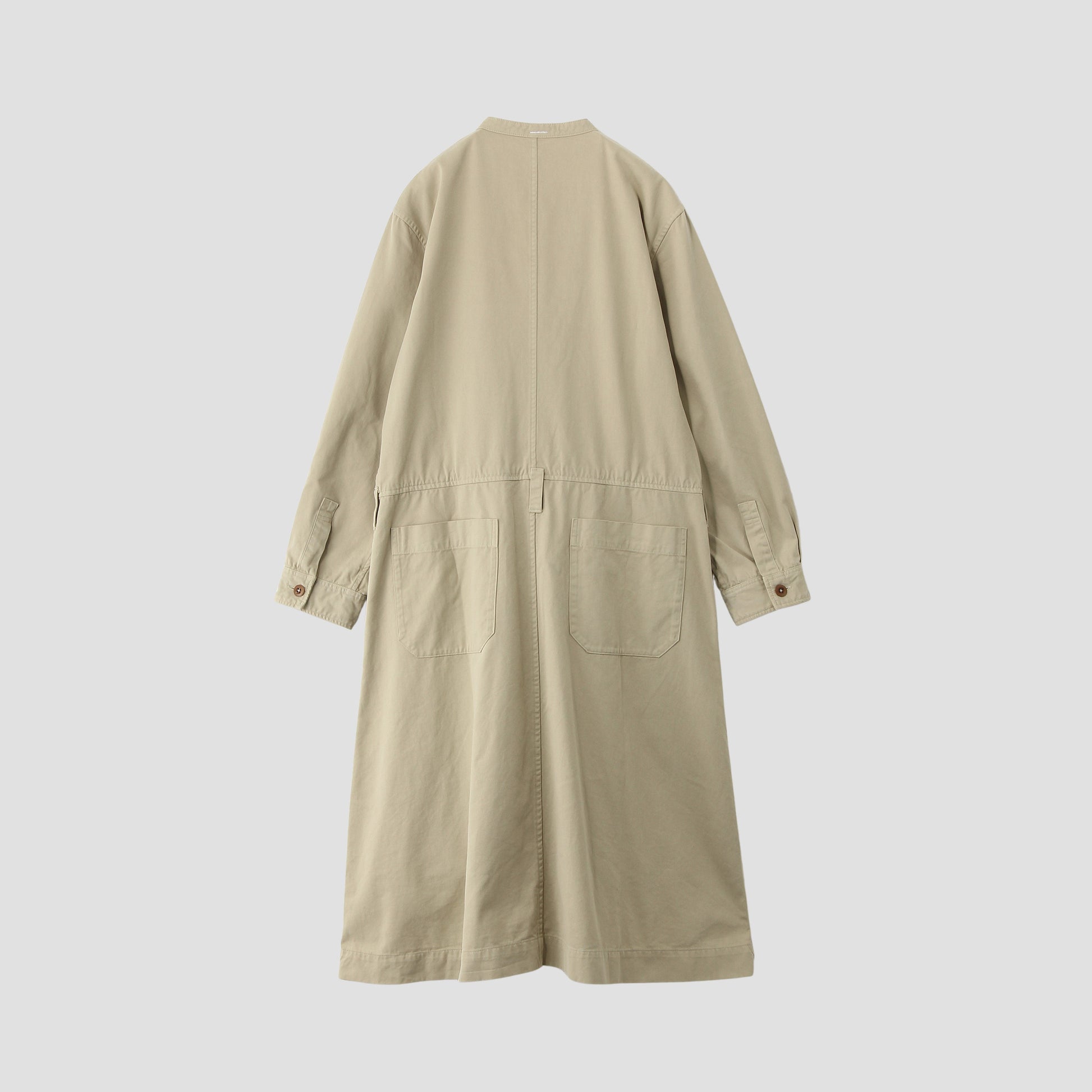高密度に打ち込まれたタフな素材を用いており、使い込むほどに味わいが増すカラーレスのドレス。