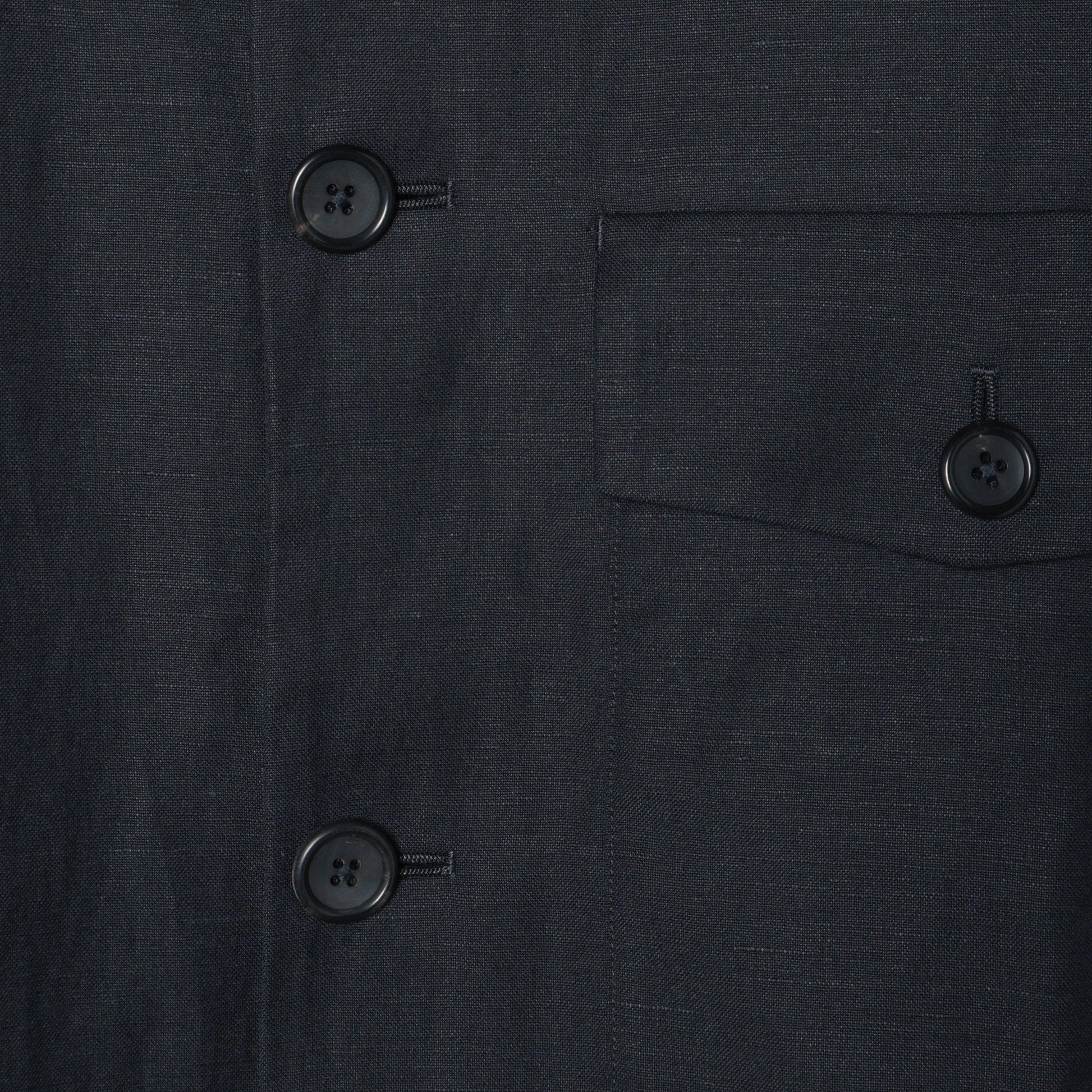 フォックスブラザーズ社製の柔らかなウールと張りのあるリネンの素材を使用したブルゾン。膨らみがありながらもシャリっとした肌触りと、自然な光沢感を併せ持った素材。濃く、深みのあるダークネイビーはスペシャルオーダーしたカラー。シャツのような軽い着心地でフラップポケットがデザインのアクセント。