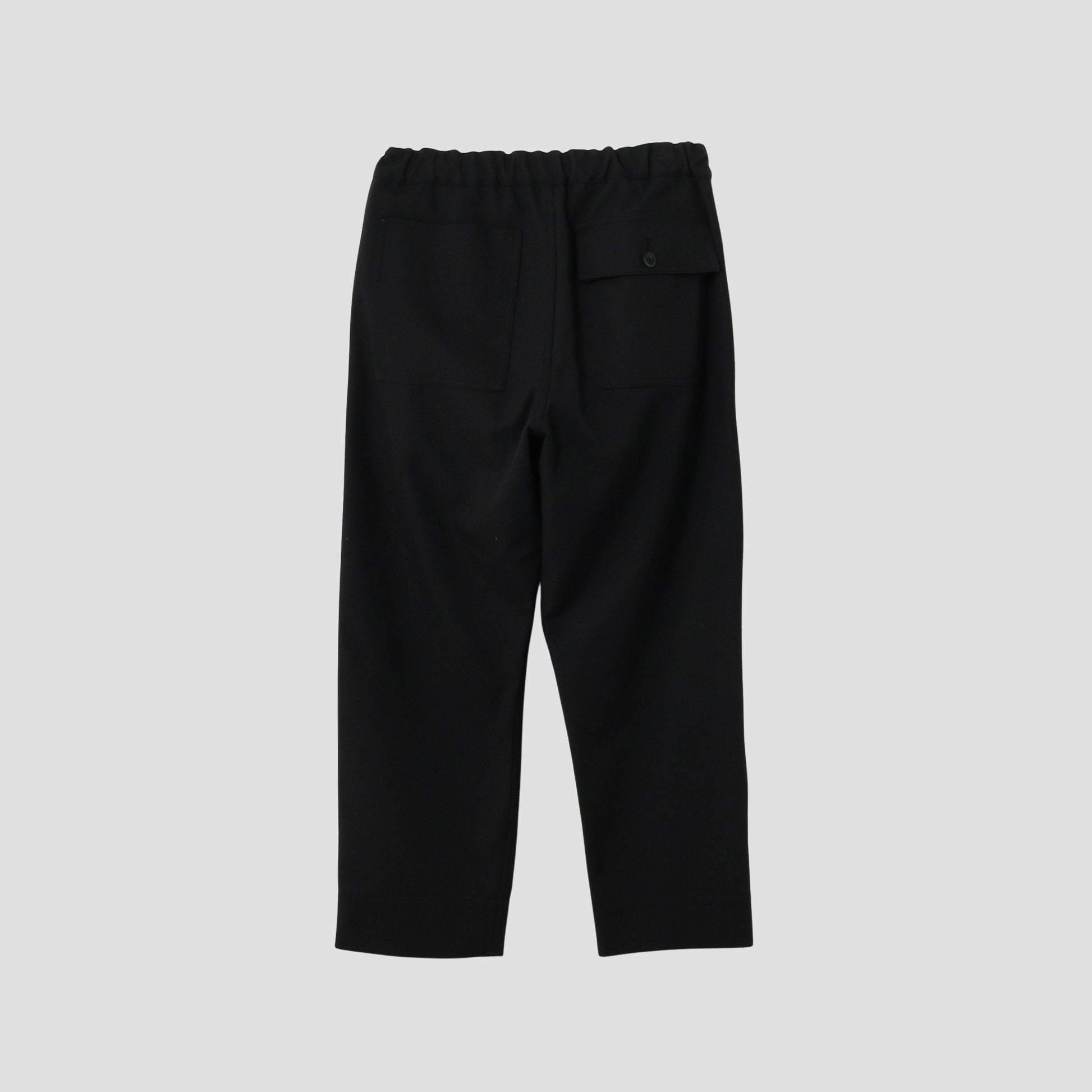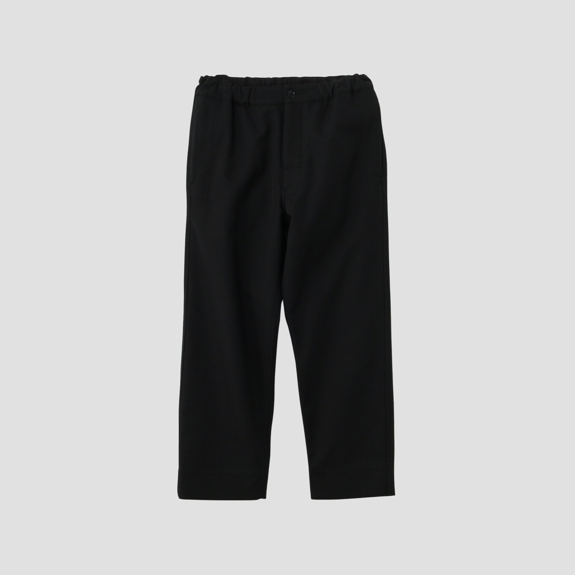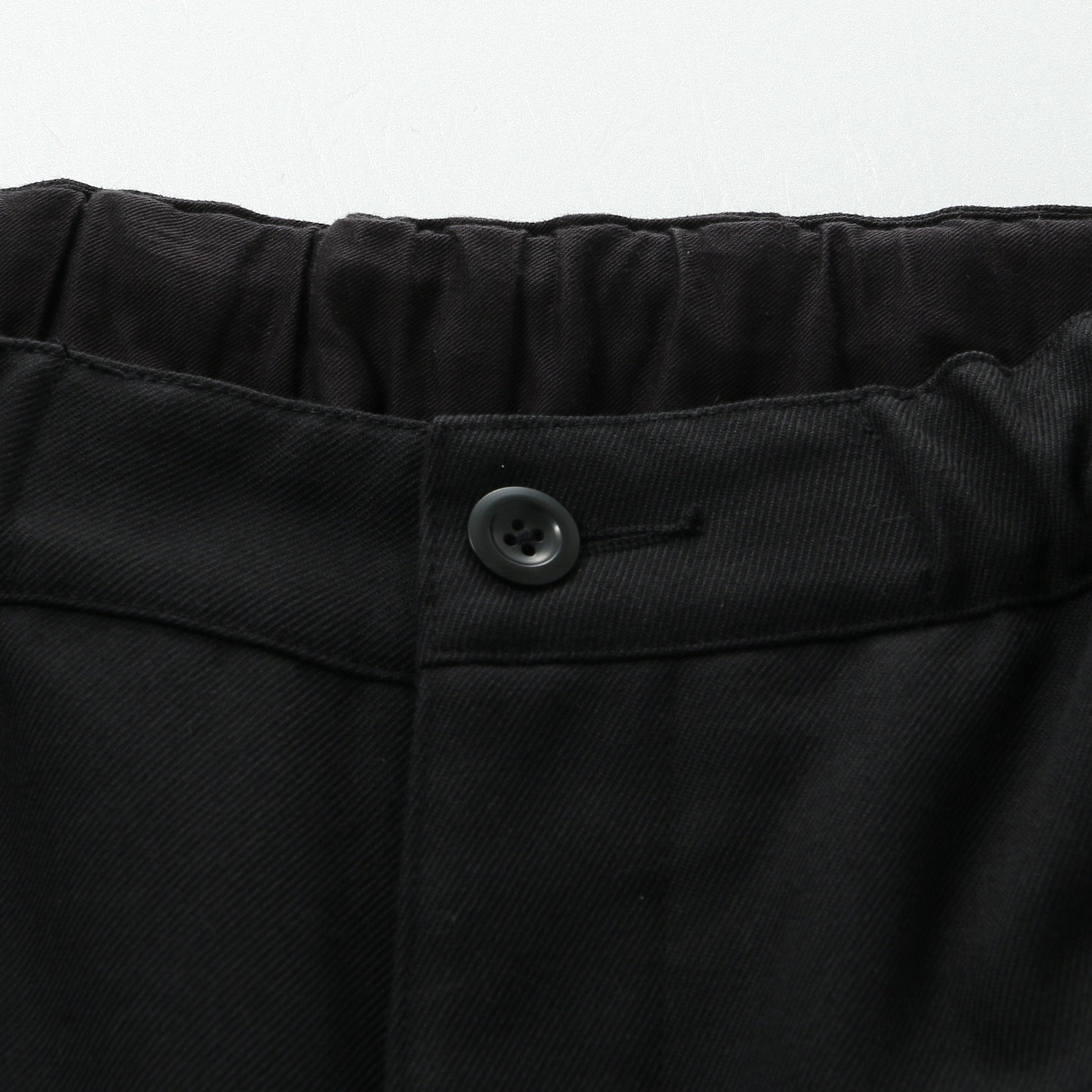 ウールコットン素材を使用したトラウザーズ。スポンディッシュな綾目の立ったドリルの表情が特徴。幅の広い見返し仕様の裾がデザインポイントで、様々なスタイリングに合わせやすいアイテム。