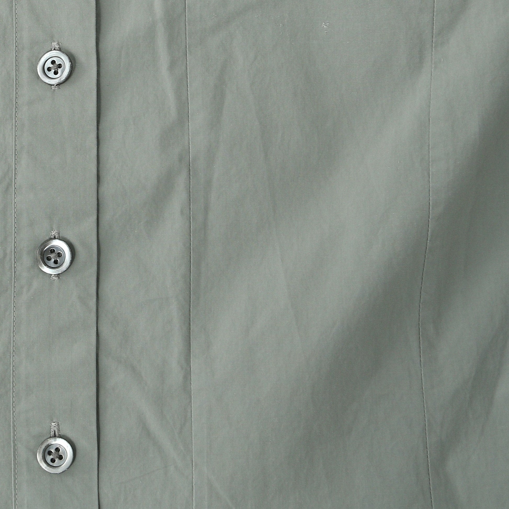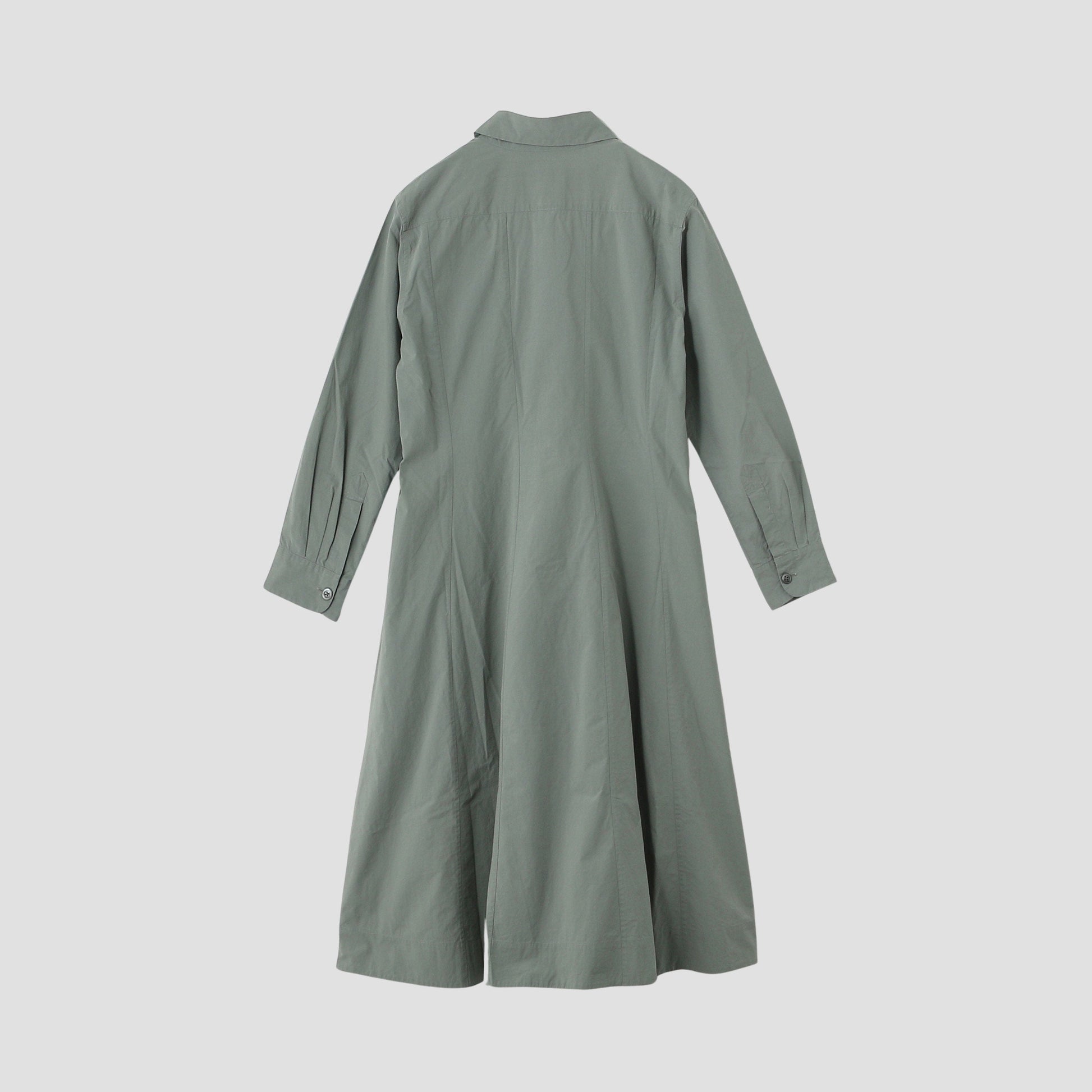 打ち込みの良いコットン素材を使用したドレス。身頃に切り替えを入れ、裾に向かって分量をたっぷりと入れたシルエットがデザインのポイント。
