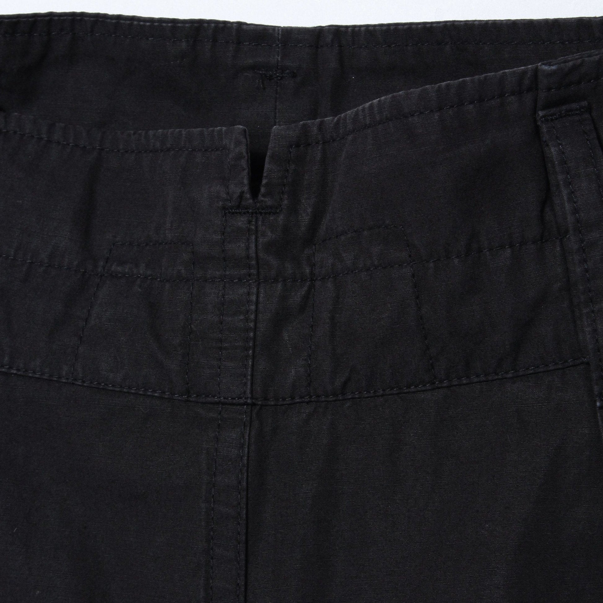ステッチワーク、ウエストが紐で調節できるなどシンプルながらこだわりのある一枚。