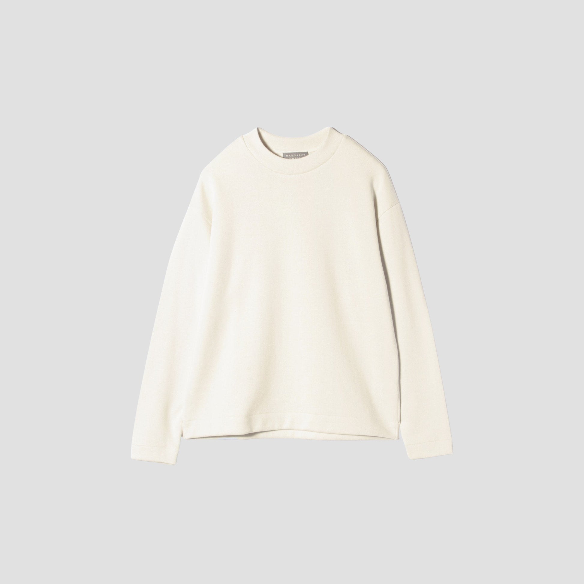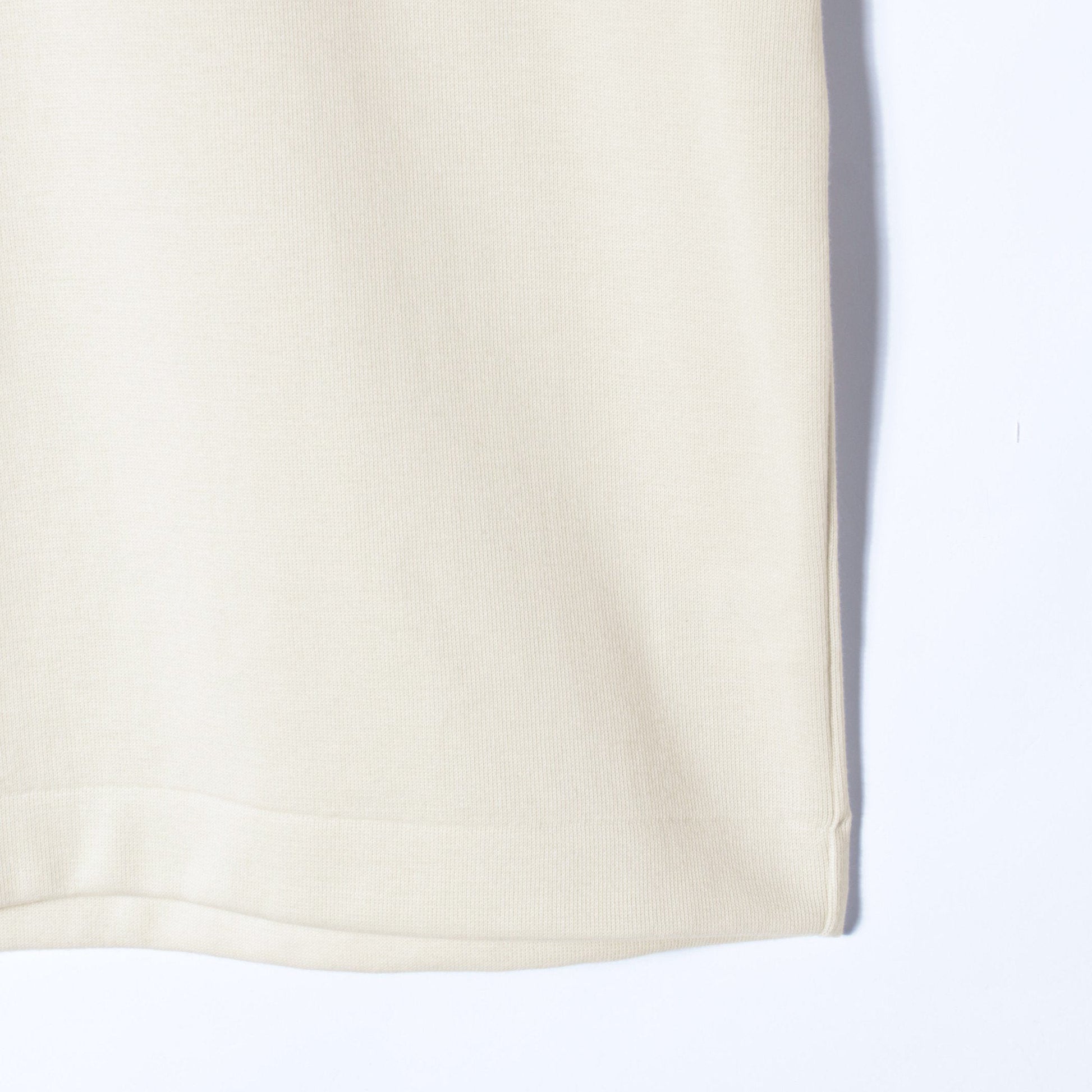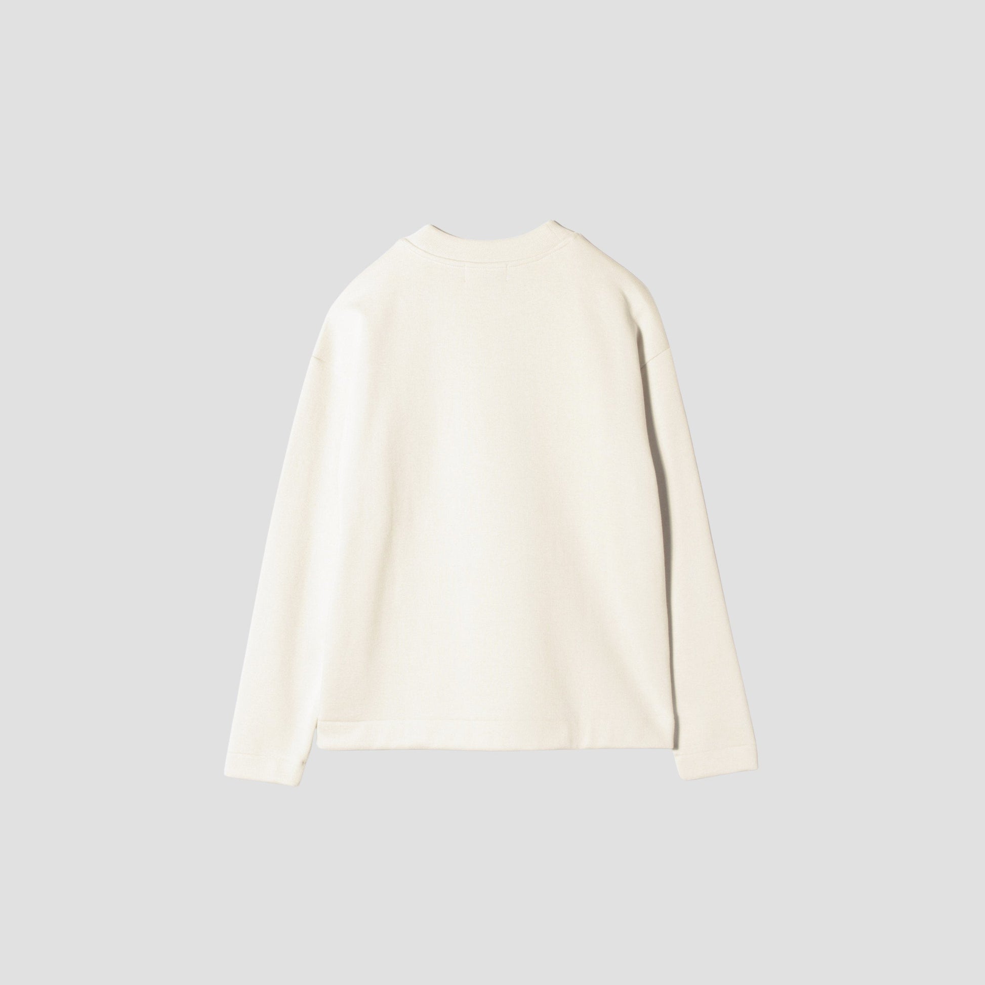 コットンと防縮ウールの混紡糸を使用したダブルフェイス組織のジャージー。嵩高がありソフトな風合いが特徴。クルーネックとセットインスリーブのデザインで様々なアイテムと相性の良いリラックス感のある一枚。