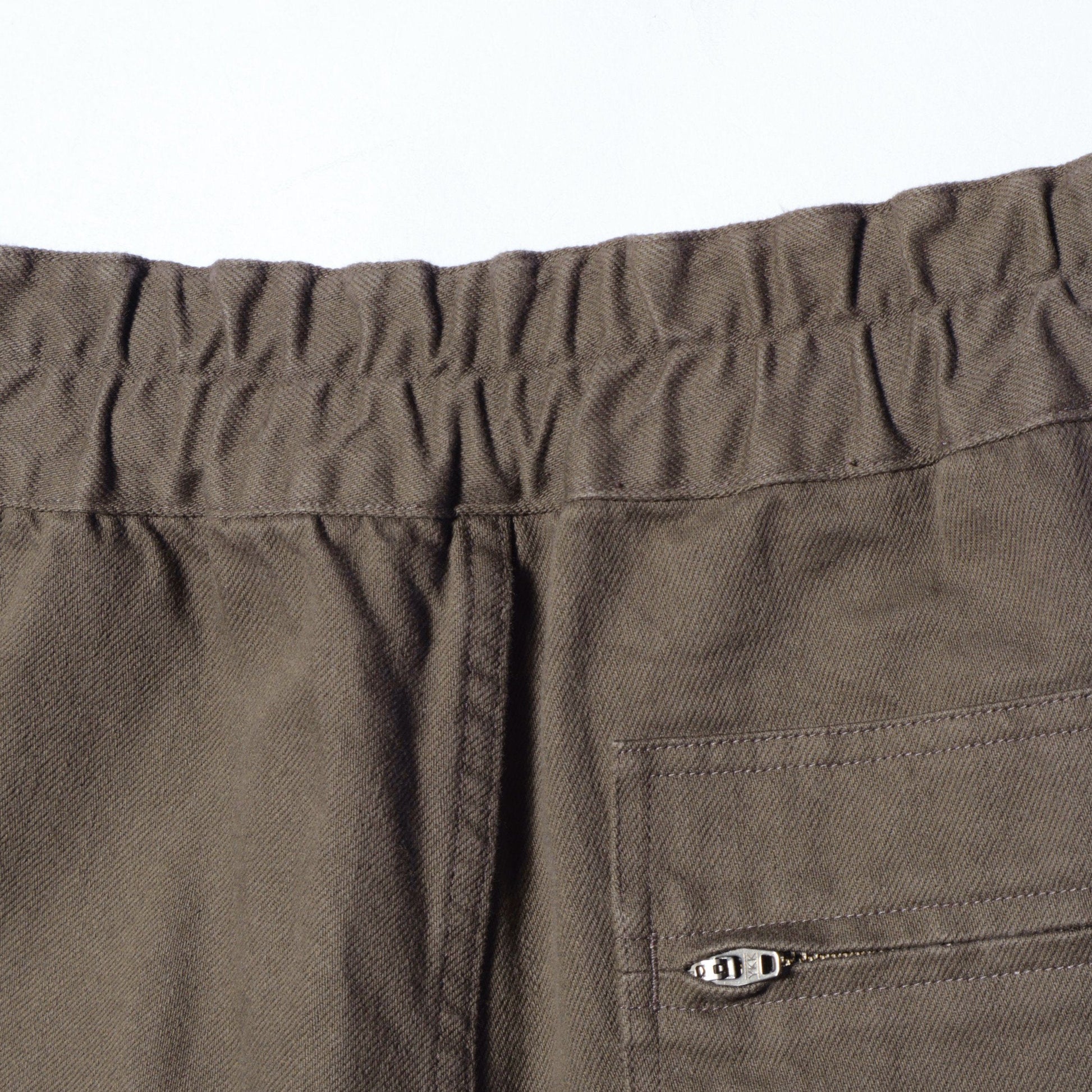 タフな表情と柔らかな着心地を併せ持ったコットン素材のトラウザーズ。裾のリブ仕様が特徴的なデザイン。