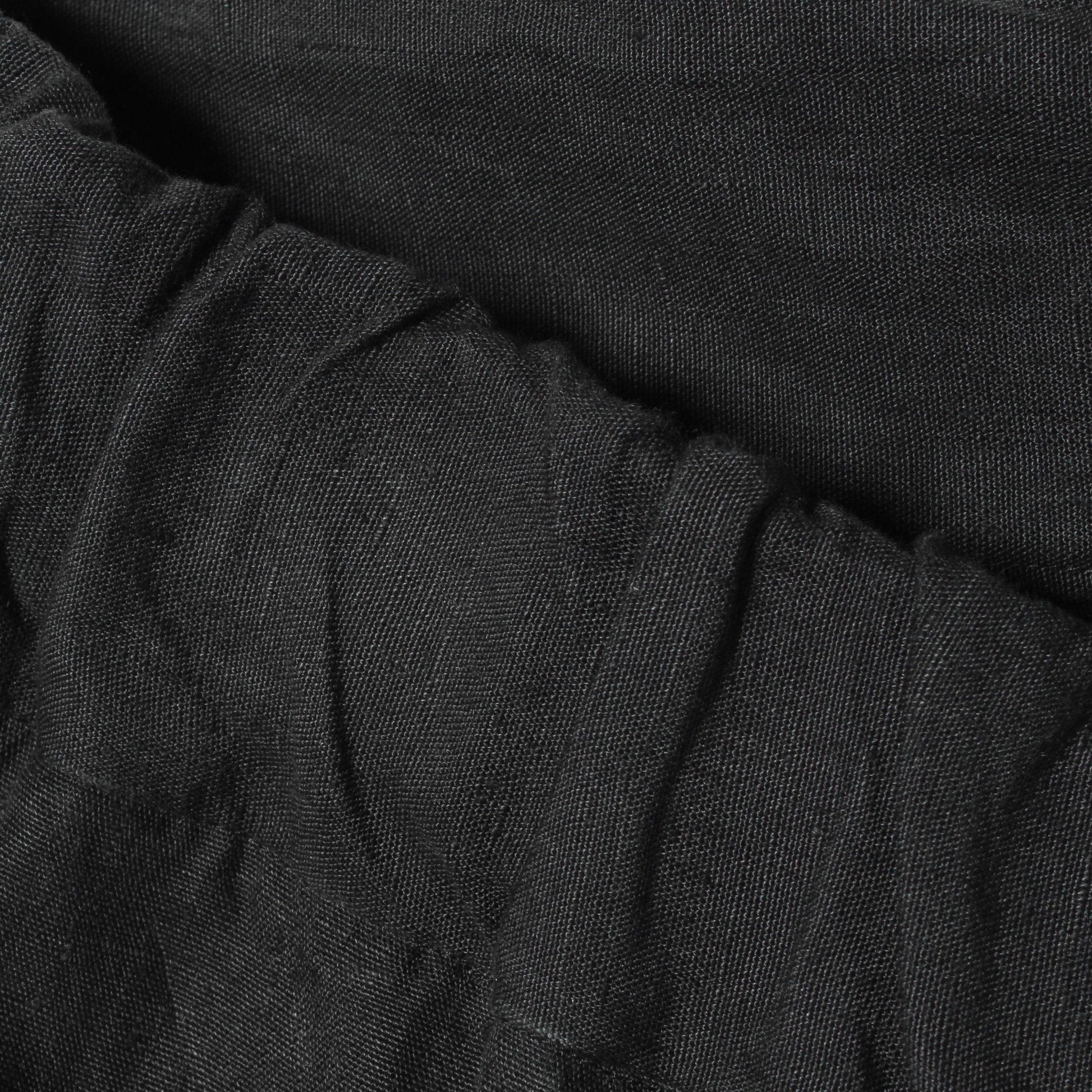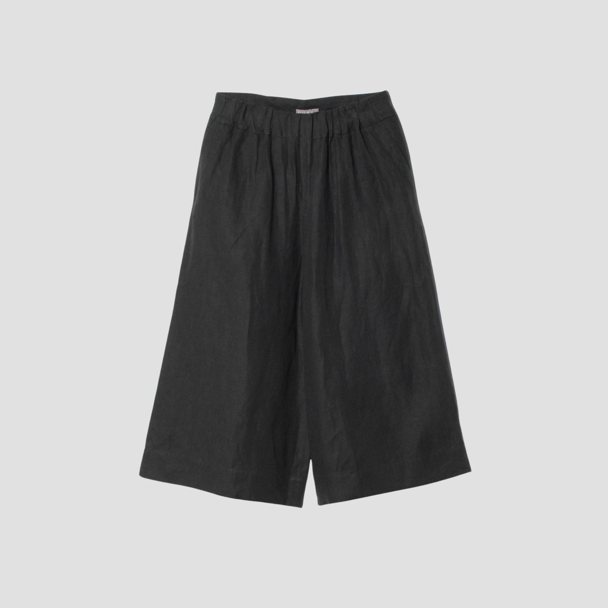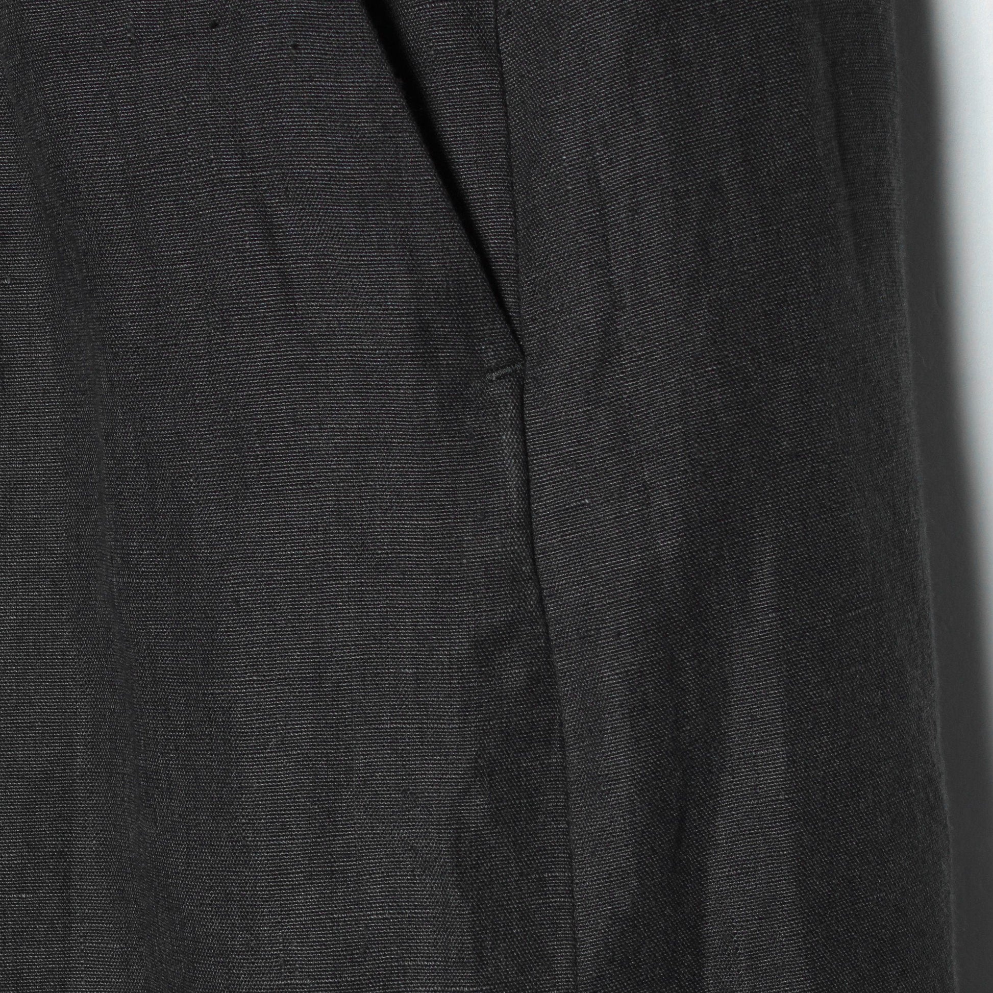 しっかりとした平織りのリネン素材を使用したトラウザーズ。フロントはドローストリングのカジュアルな雰囲気に、バックはテーラーのディティールを用いたスタイル。