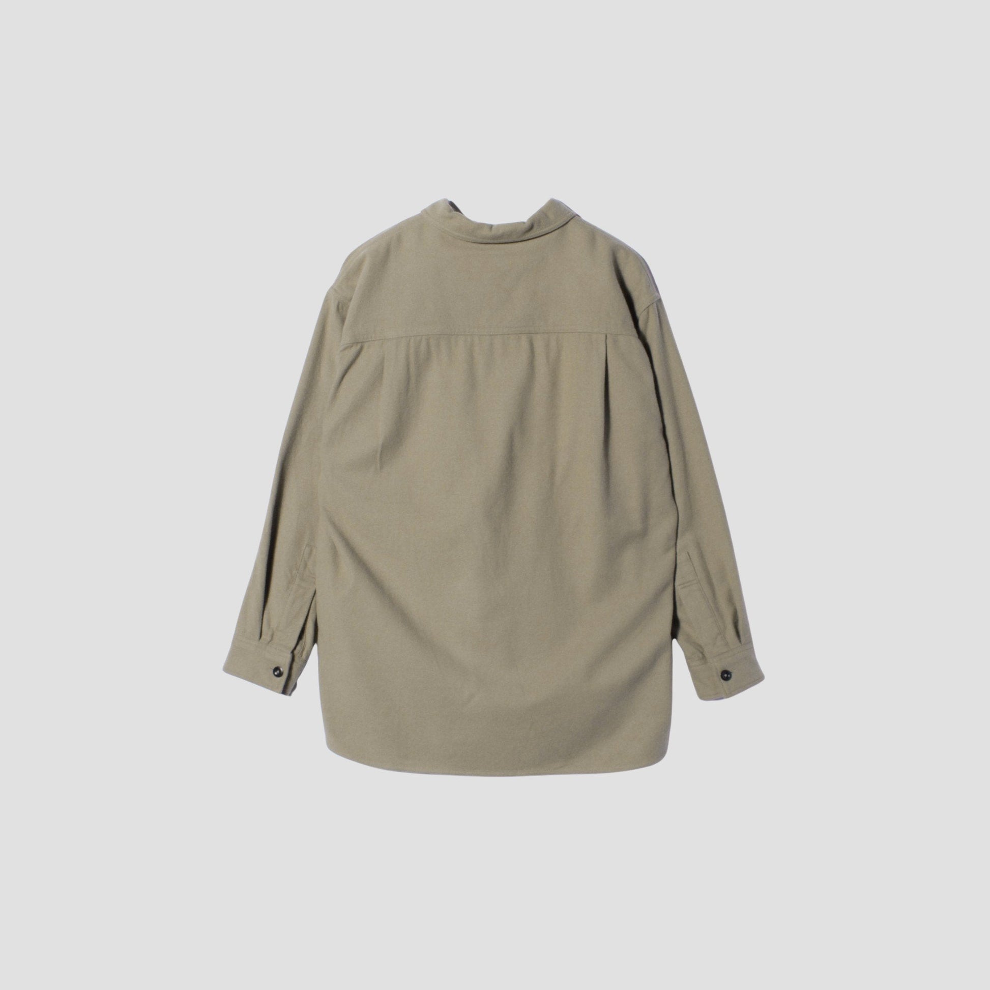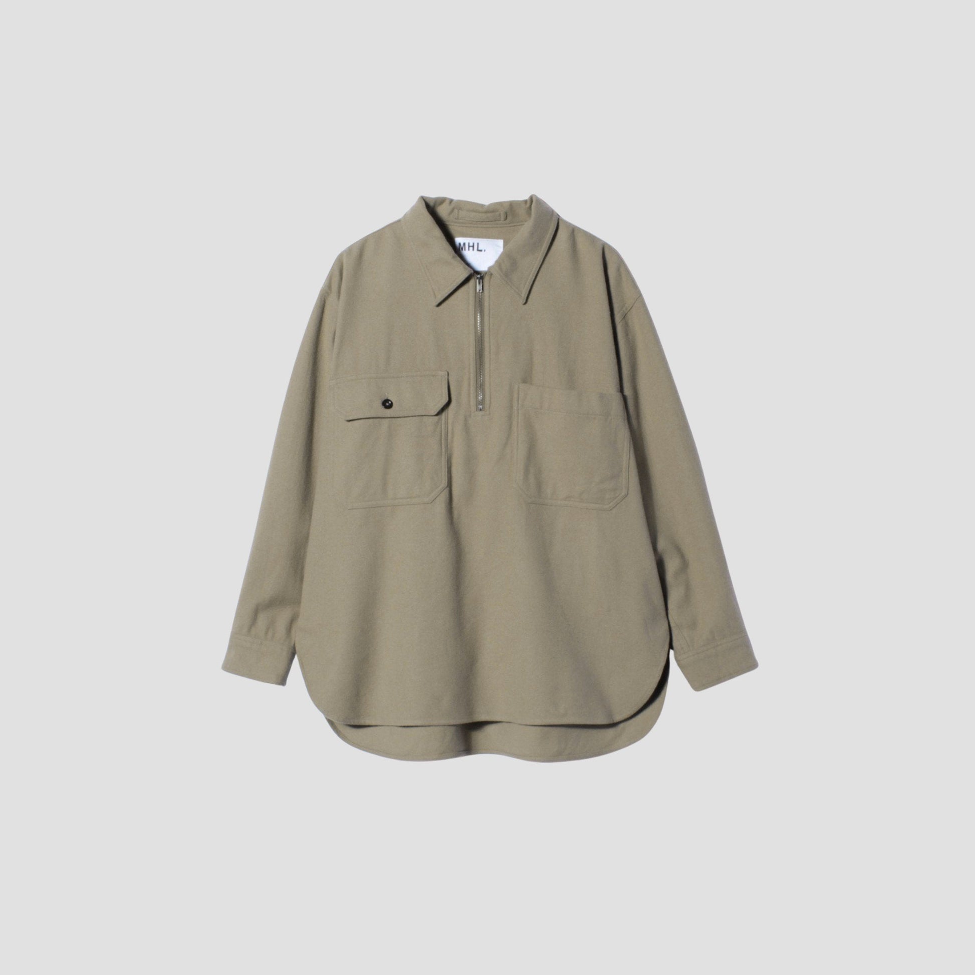コットンウール素材を使用したシャツ。フロントはハーフジップ仕様で、リラックスしたフィット感がポイント。左側の胸ポケットはフラップを無くした使い勝手の良いデザイン。