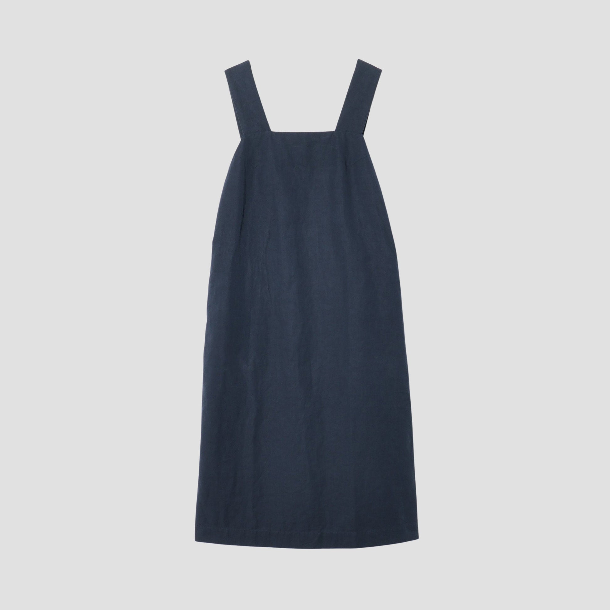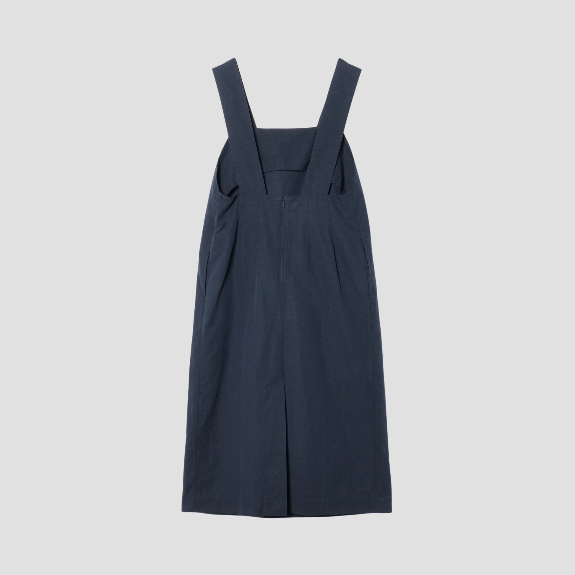 肌触りが良く、適度な張りのあるコットンリネンシルク素材のドレス。肩からウエストにかけてすっきりとしたフィット感に対し、ウエスト下からはボリュームのあるシルエットが特徴的なアイテム。太幅のストラップやアームのカッティングがデザインのポイント。