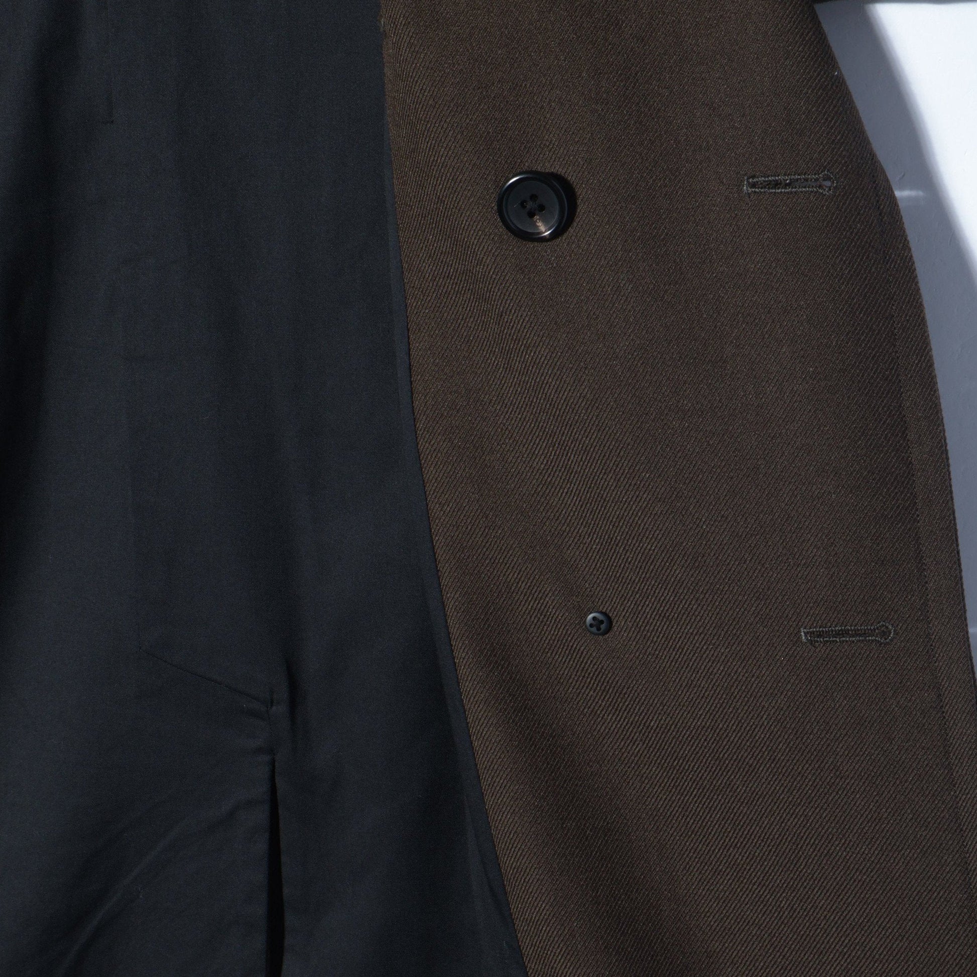 膨らみのあるツイル素材のダブルブレストコート。
