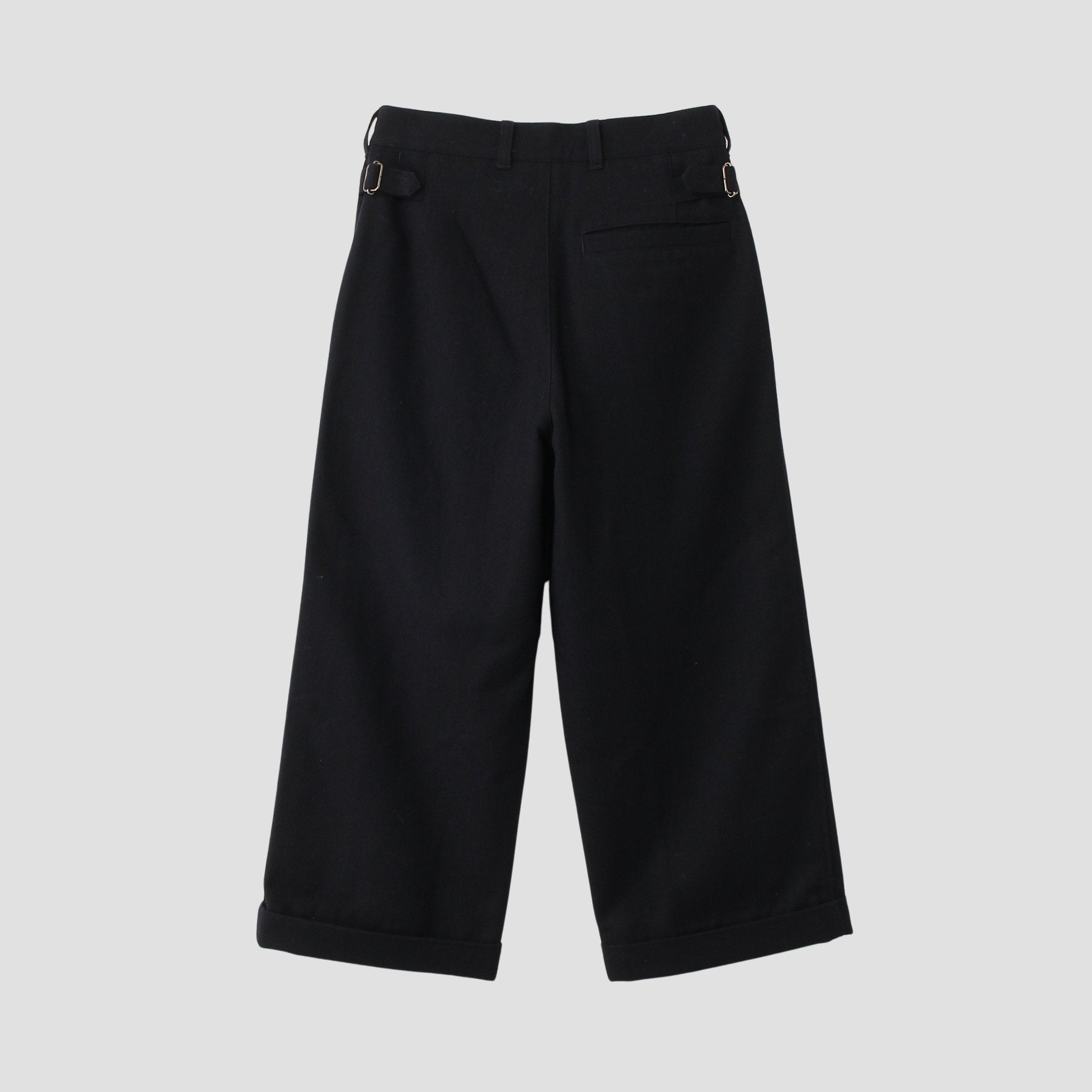 ウールコットン素材を使用したトラウザーズ。
