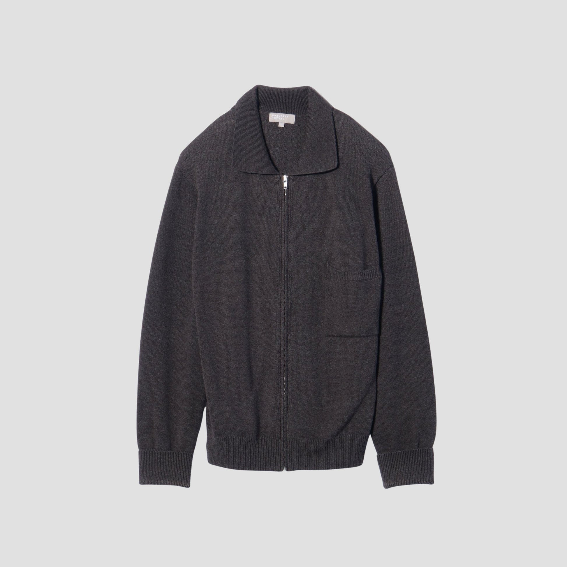 軽さのあるコットンウール素材を使用したジップアップのニット。