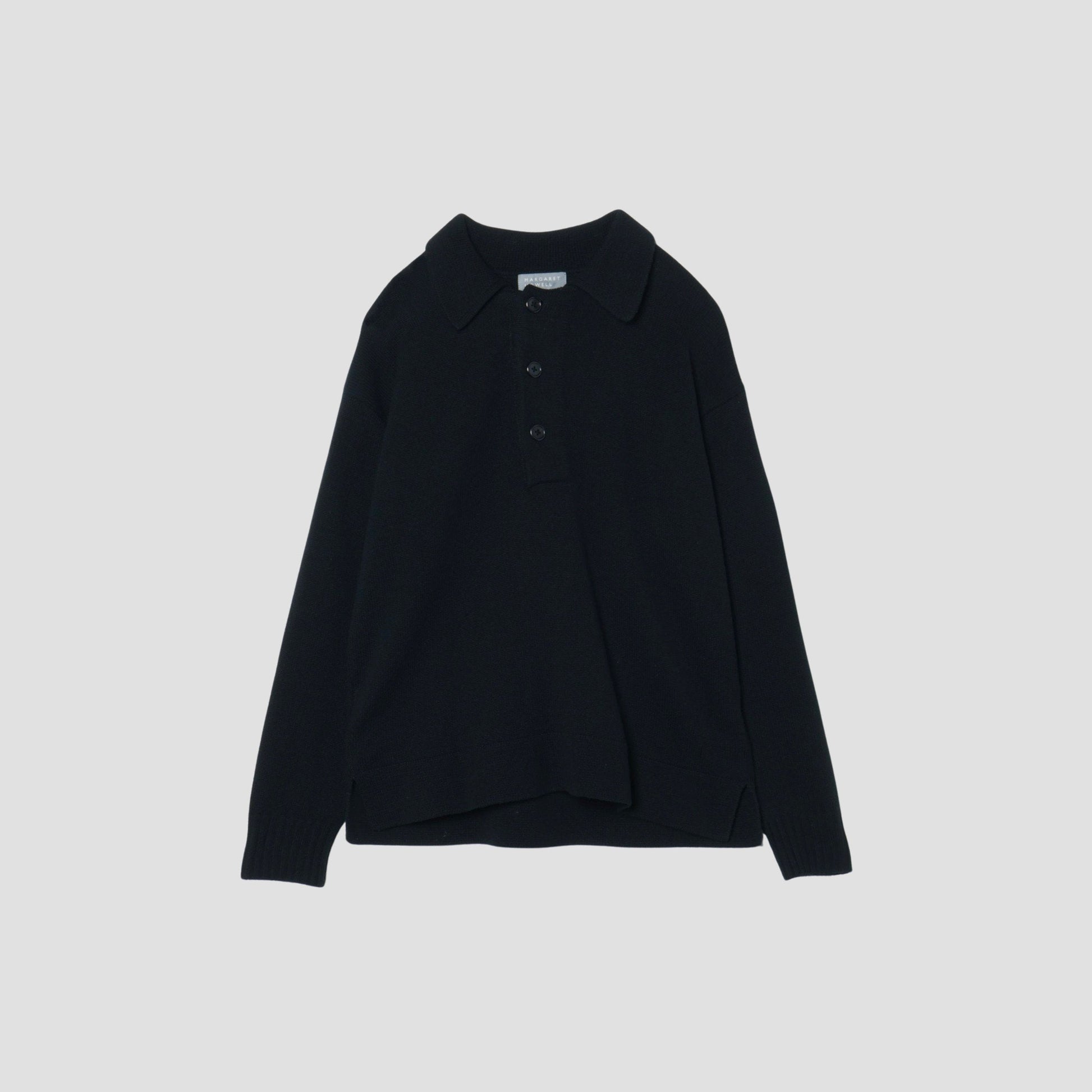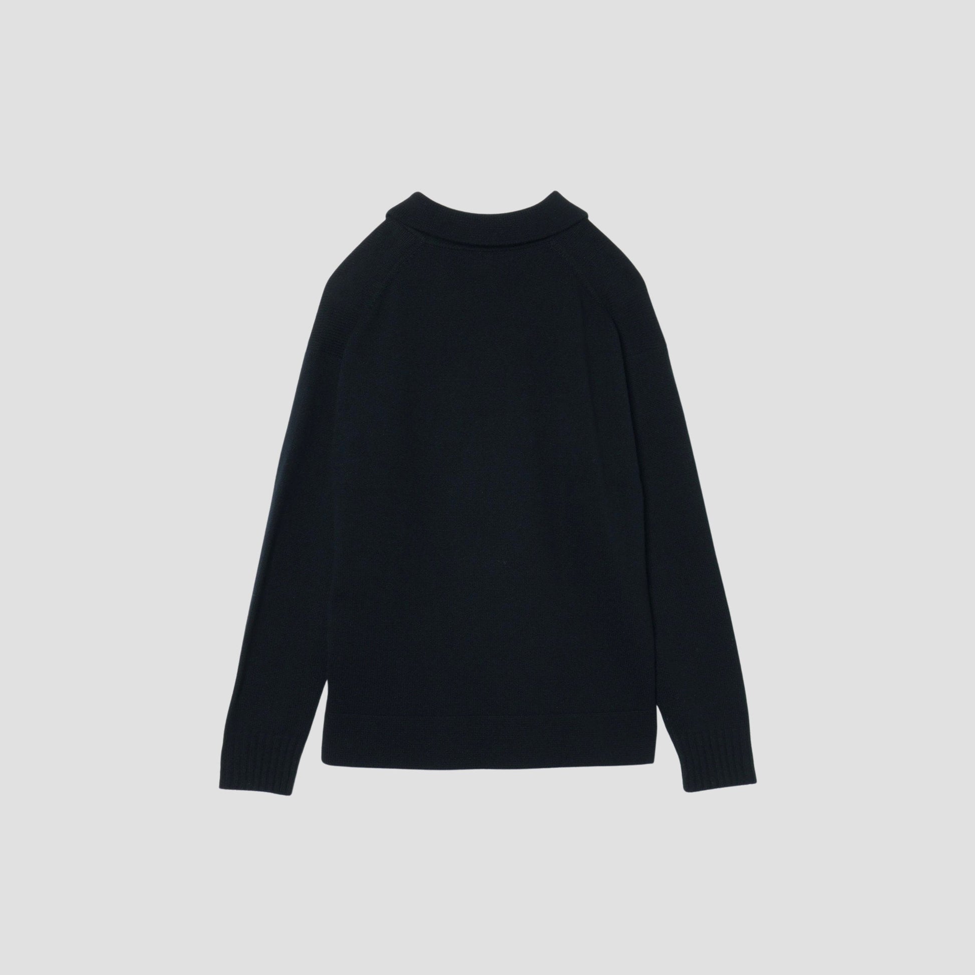 ウールカシミア素材のニットポロ。膨らみや柔らかなハンドリングが特徴。ドロップショルダーと着丈はやや短め設計のボクシーシルエット。