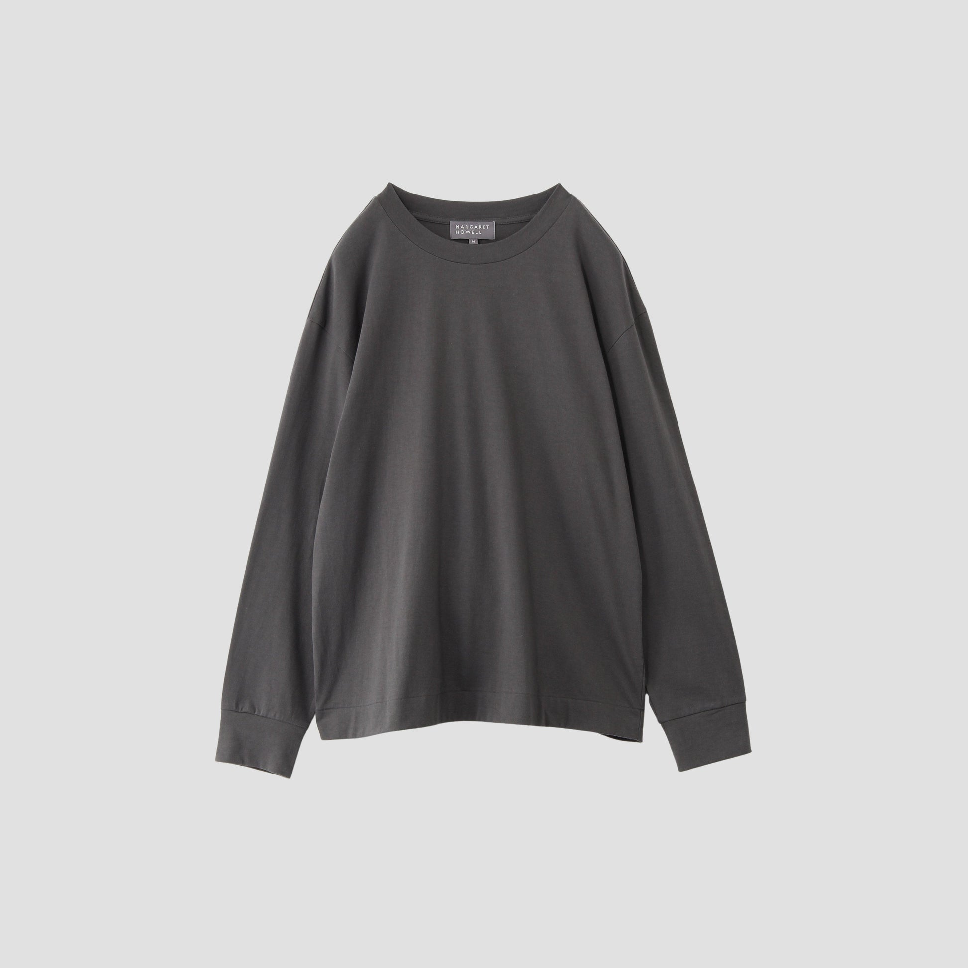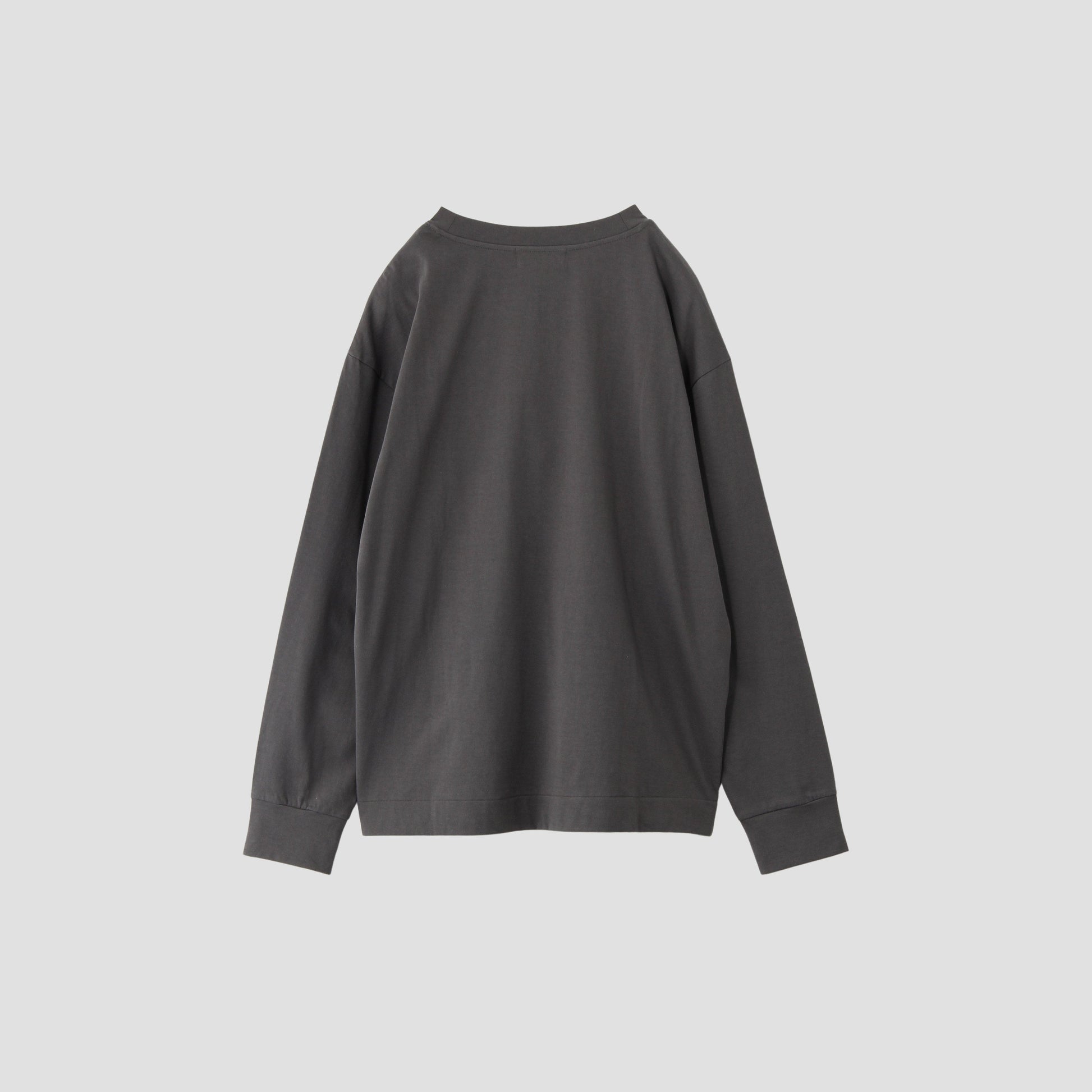 バルキーで柔らかなコットンを使用したジャージー。度詰めの天竺編み仕様で、共地のリブを袖口に付けたリラックスフィットのクルーネック。ベーシックなカラーで汎用性の高い一枚。