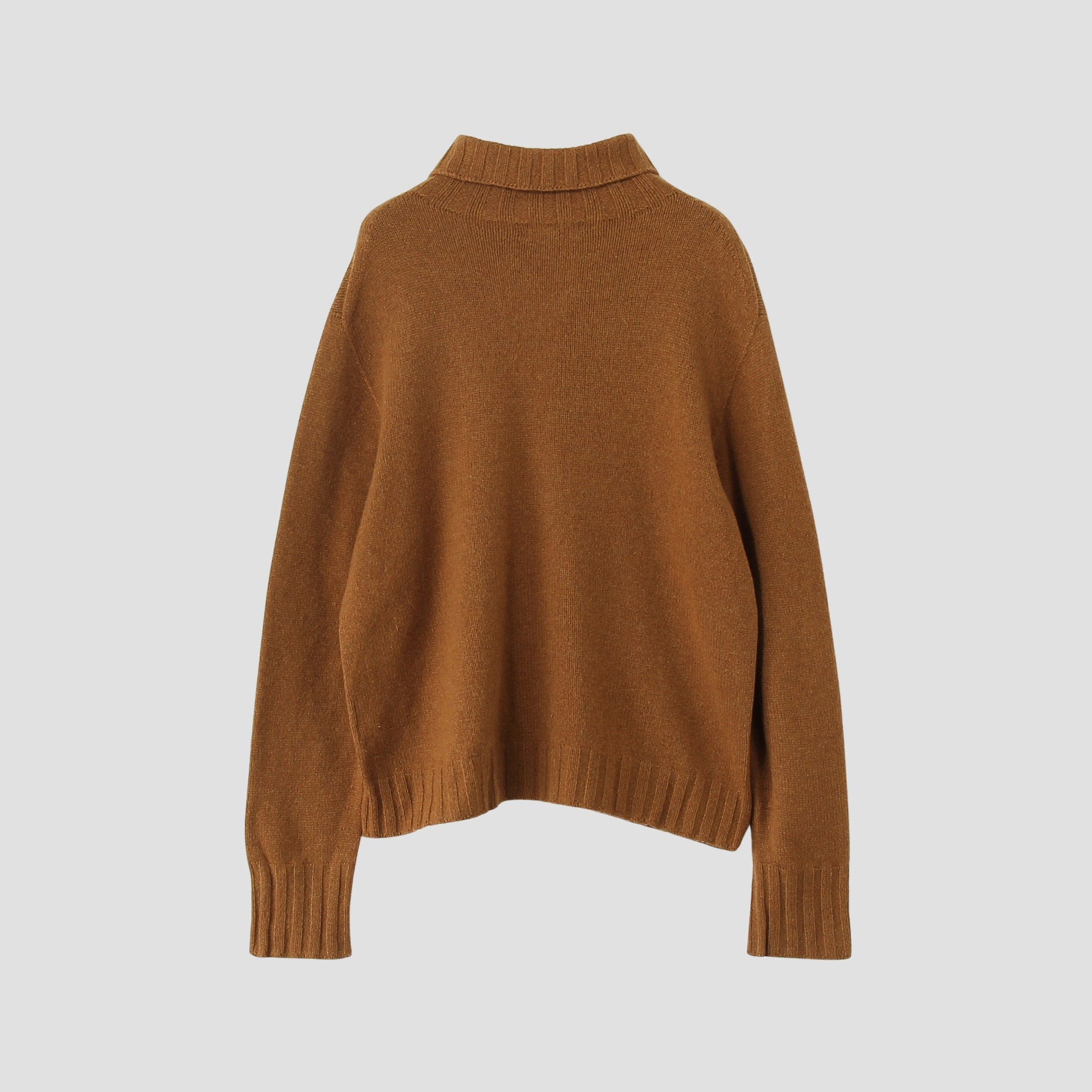 ウールカシミヤ素材のタートルネックニット。
