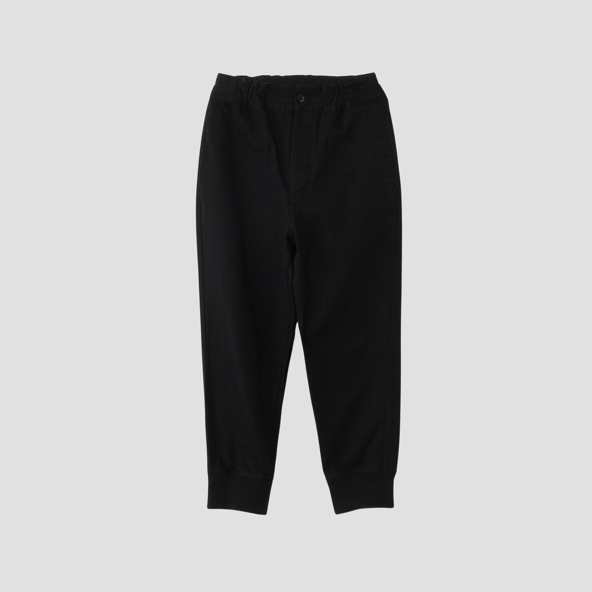 タフな表情と柔らかな着心地を併せ持ったコットン素材のトラウザーズ。裾のリブ仕様が特徴的なデザイン。