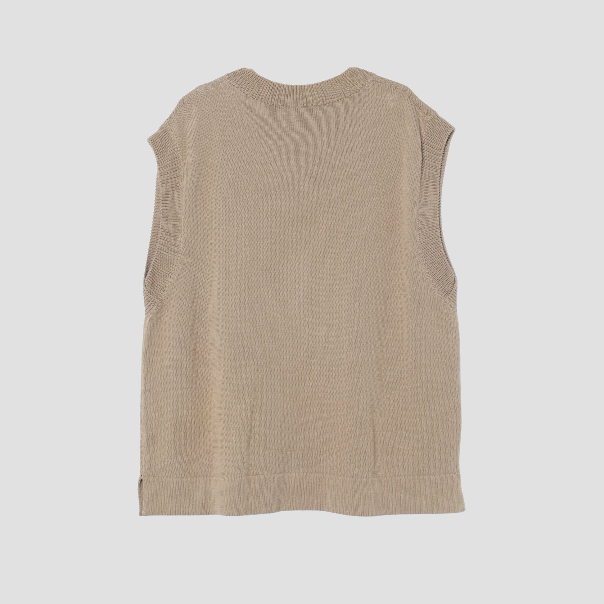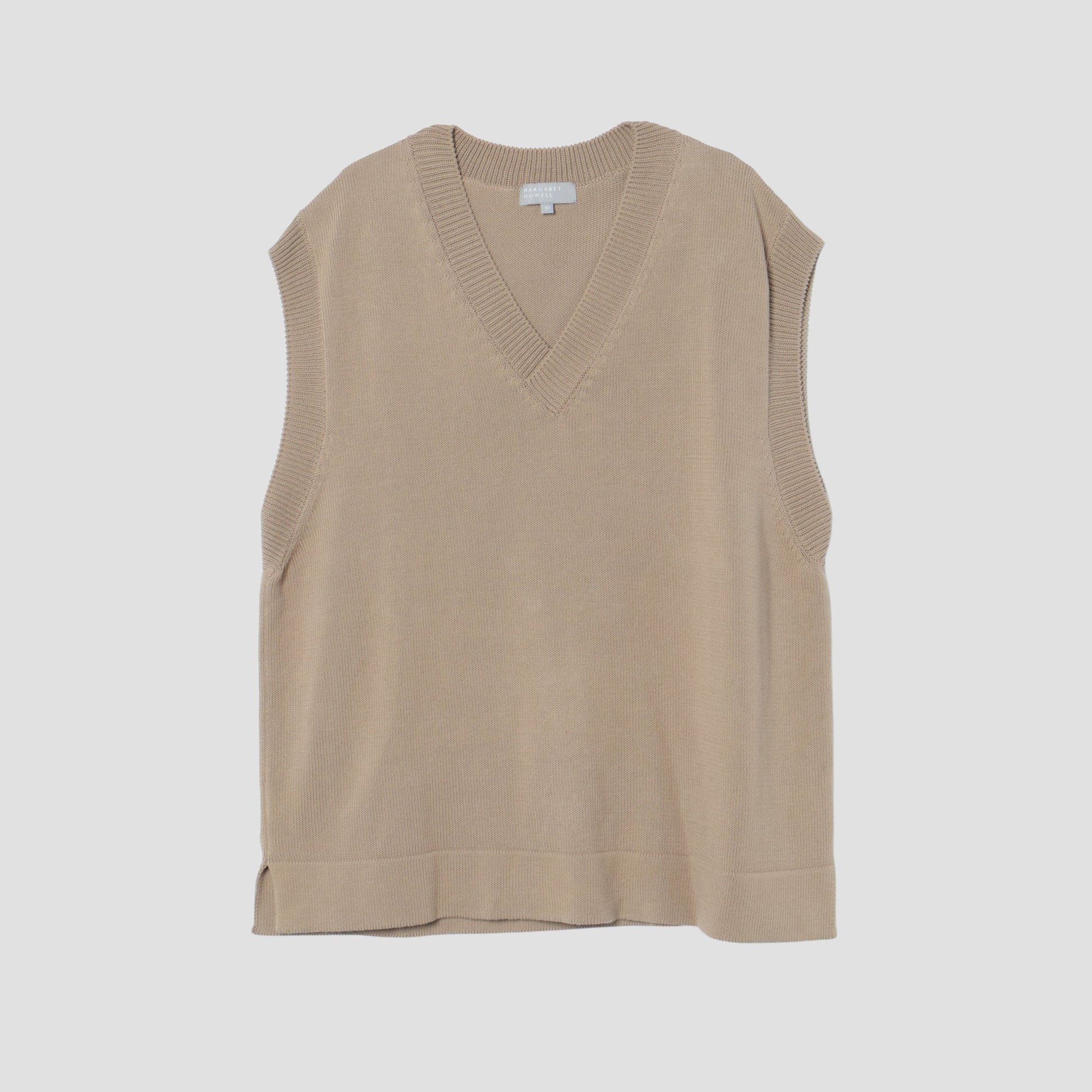 柔らかなコットンを使用したナチュラルな素材感のニットベスト。 ボクシーシルエットのVネックスリップオーバーでシンプルなスタイル。