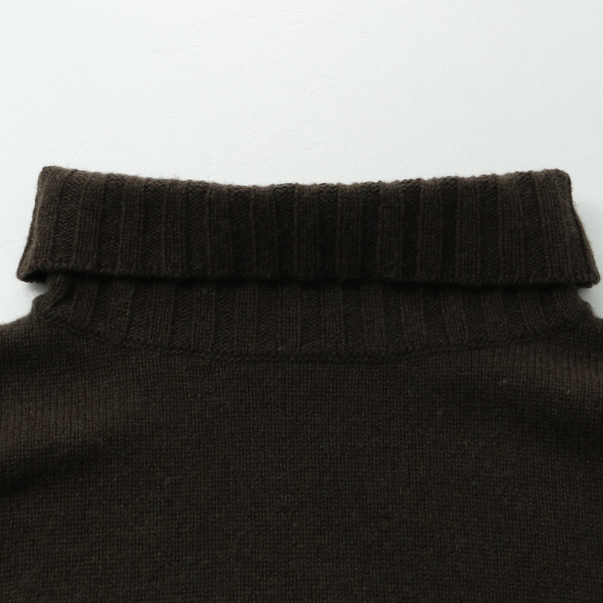 張りとコシがありながら滑らかさと光沢を併せ持ったタートルネックニット。