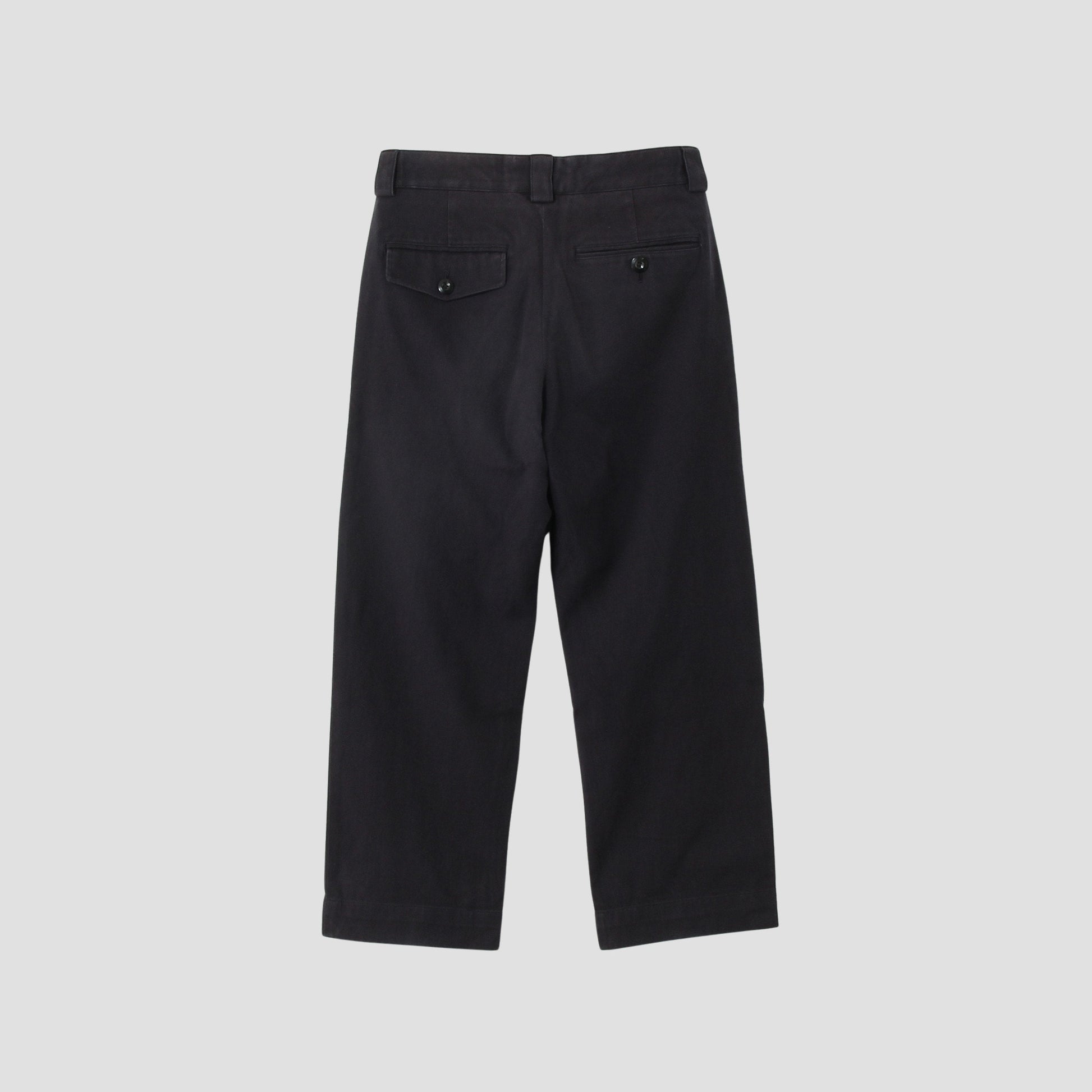 高密度でタフながらも、膨らみを感じられるコットン素材のトラウザーズ。