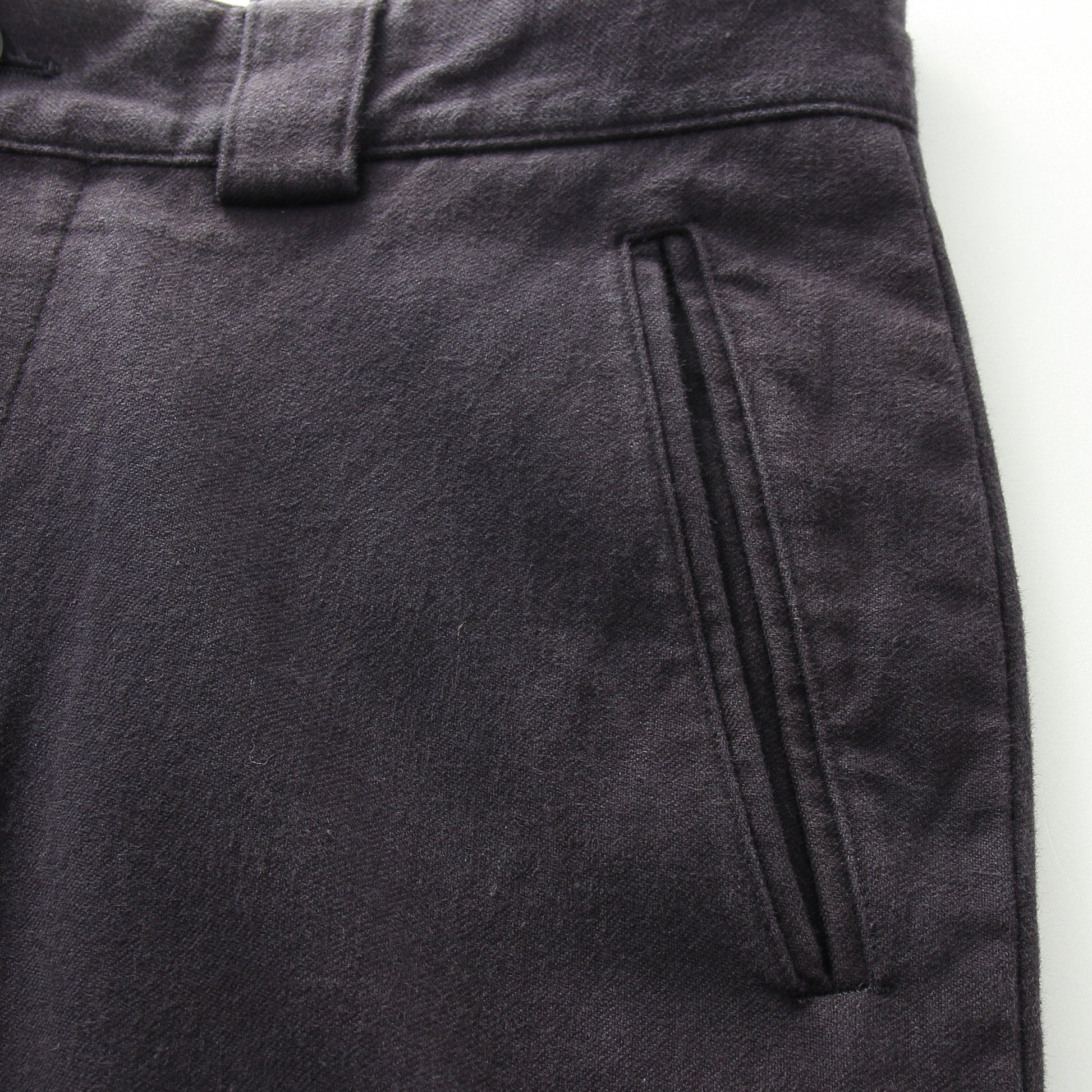 適度にゆとりがあるテーパードのデザインで、スラントしたポケットが特徴。