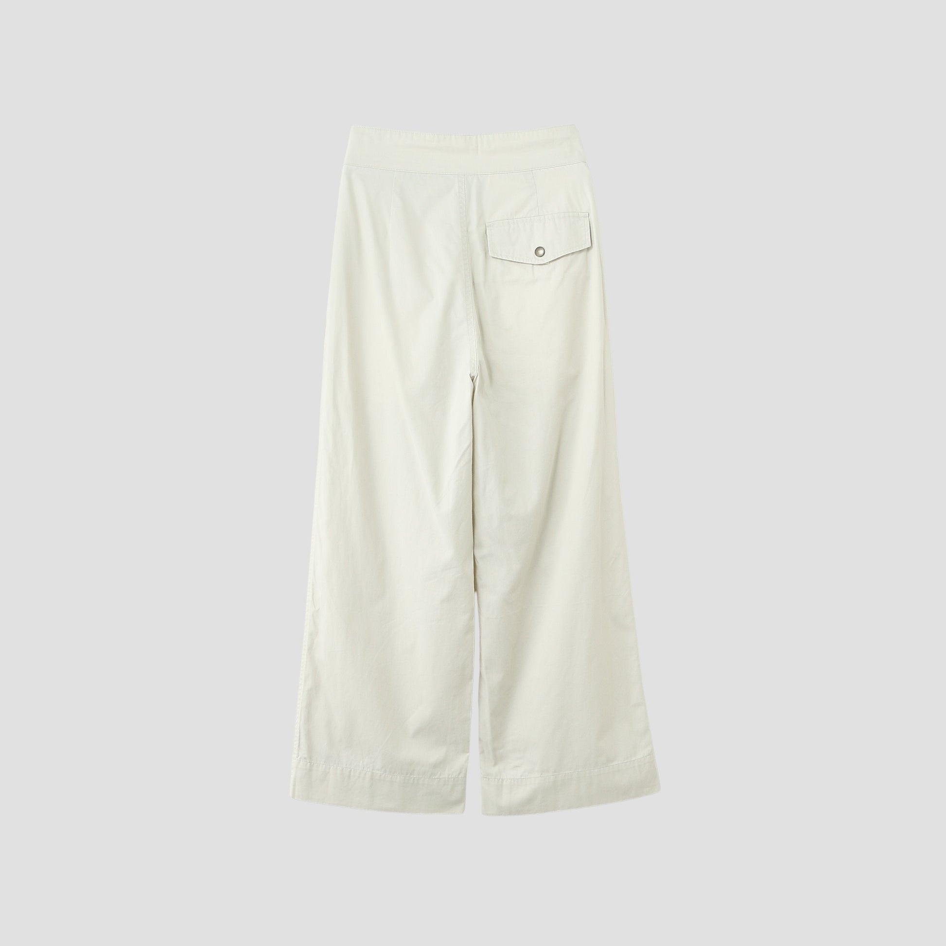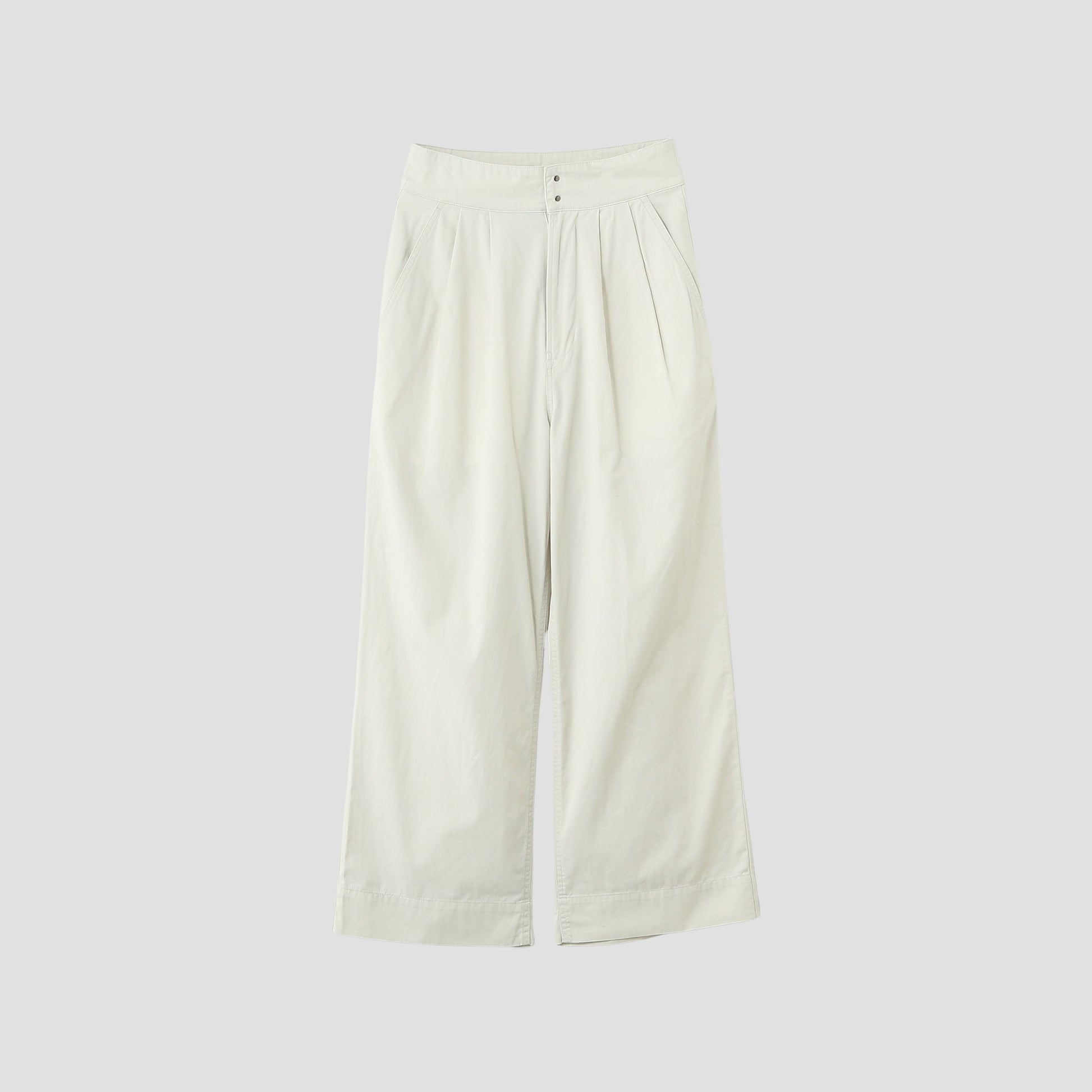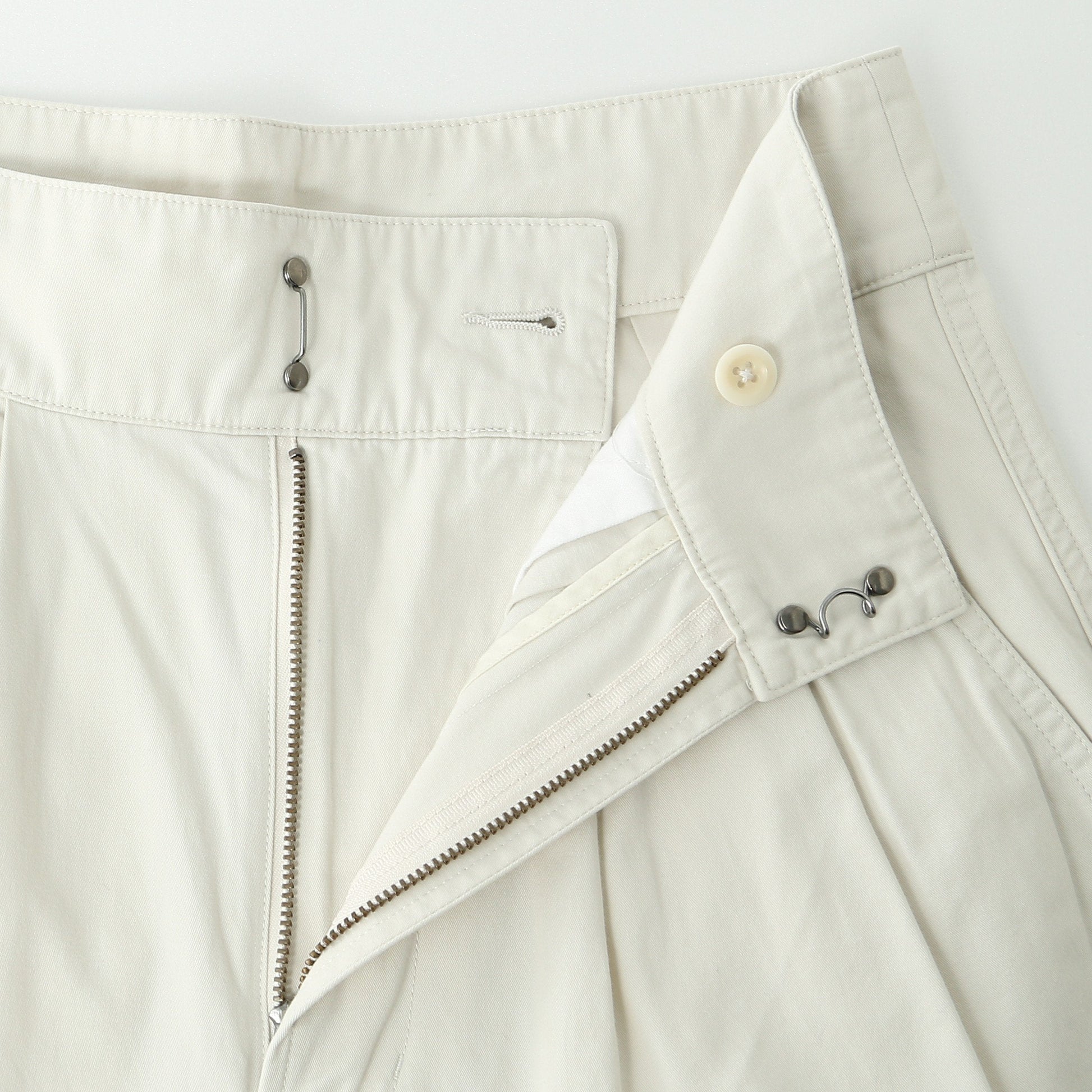 高密度に織り上げたツイル素材を使用したトラウザーズ。ウエストにタックが2本入ったワイドなシルエット。