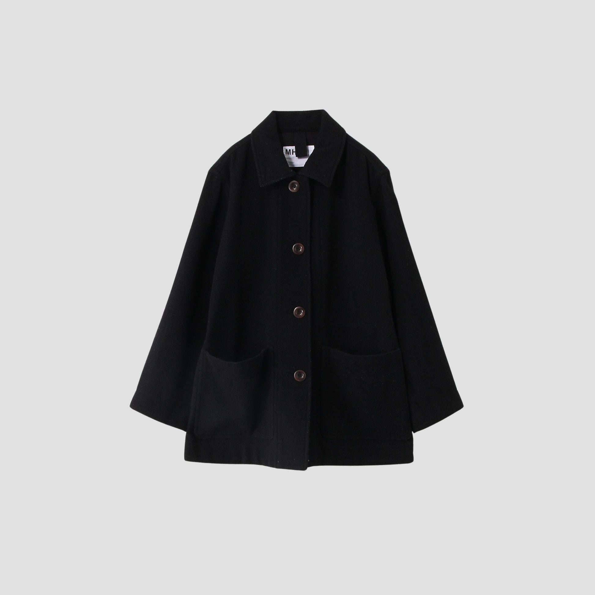 少しふくらみが出る特徴を持ったウール素材のブルゾン。軽さとふくらみのある表情とややドライなタッチでカジュアルな表情がポイント。着丈が長めのゆったりとしたAラインシルエット。