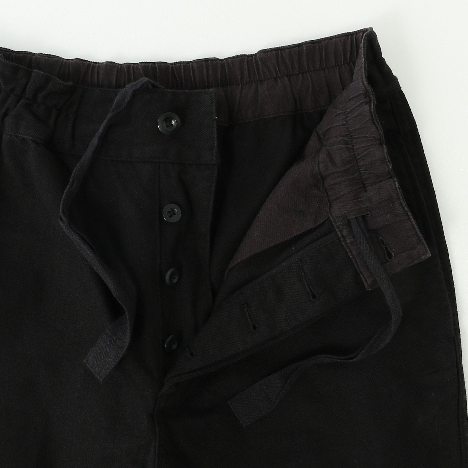 タフな表情と柔らかな着心地を併せ持ったコットン素材のトラウザーズ。裾のリブ仕様が特徴的なデザイン。
