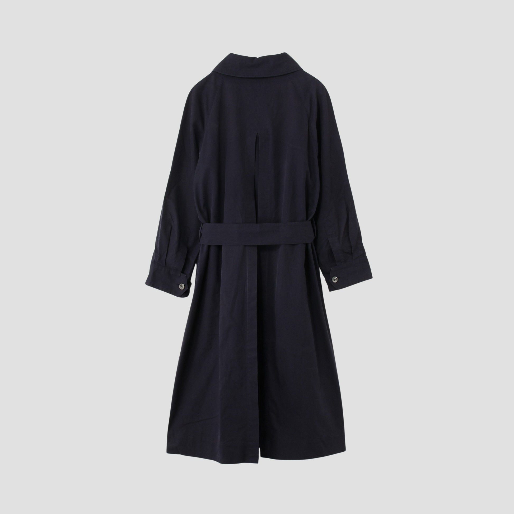 張りとコシのあるコットン素材で、トレンチコートの仕様を用いたドレス。