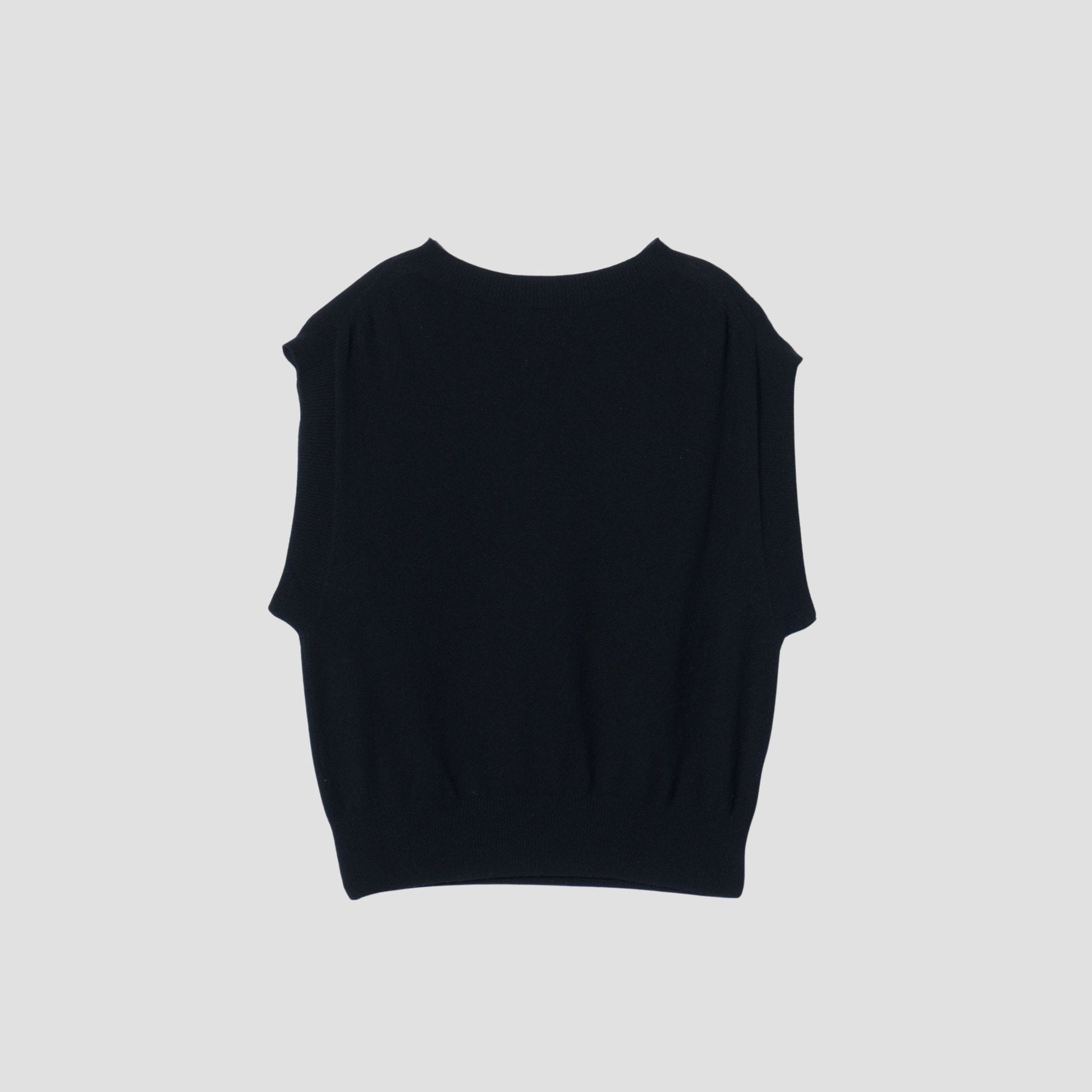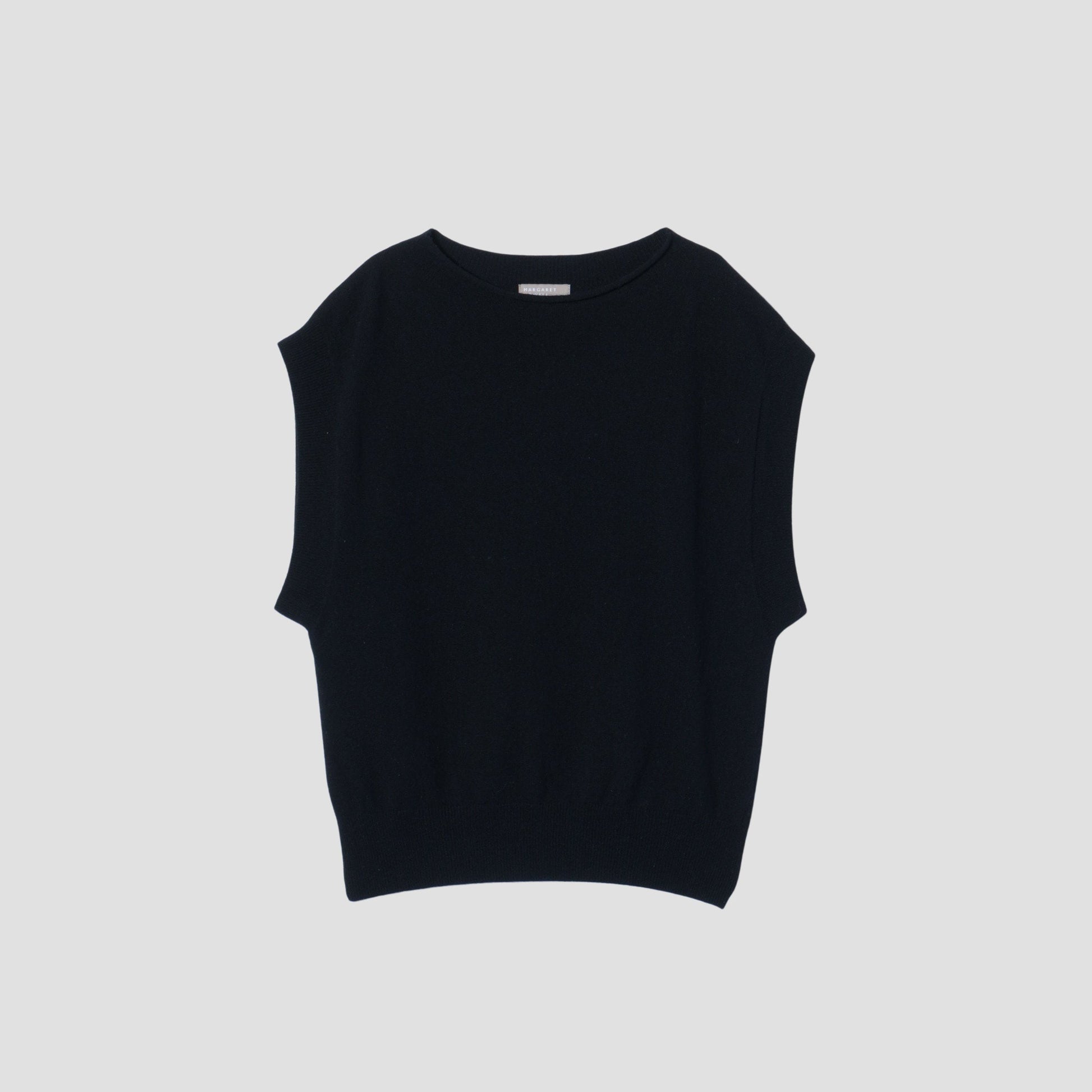 ウールカシミヤ素材を使用したニットベスト。ドロップしたショルダーと大きめの身幅が特徴。