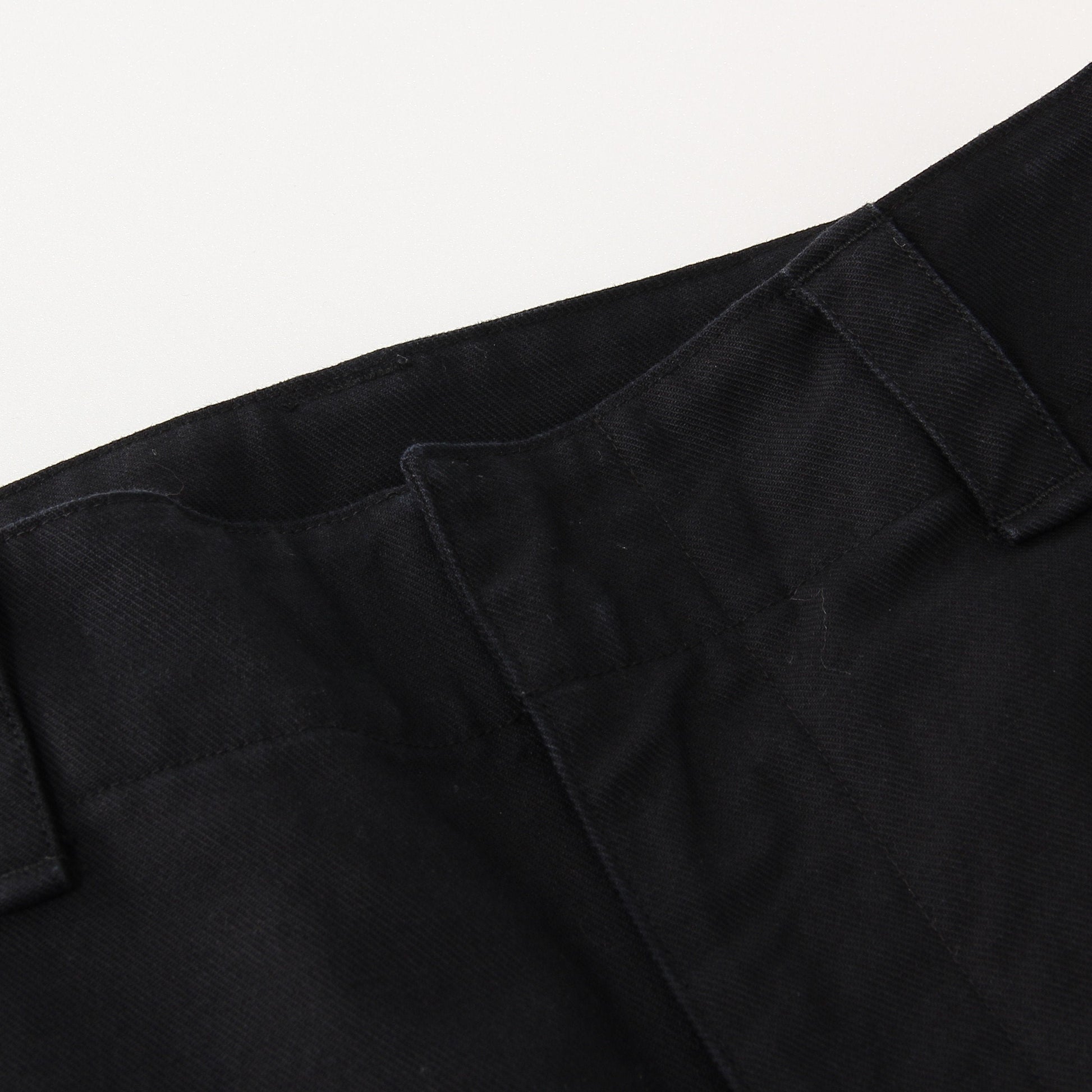 綾目のくっきりとしたドライタッチな表情が特徴のコットン素材を使用したトラウザーズ。フロントは釦ではなくフックで留める仕様で、開きにはジップを採用、バックポケットにもジップを使用した機能的なデザインがポイント。