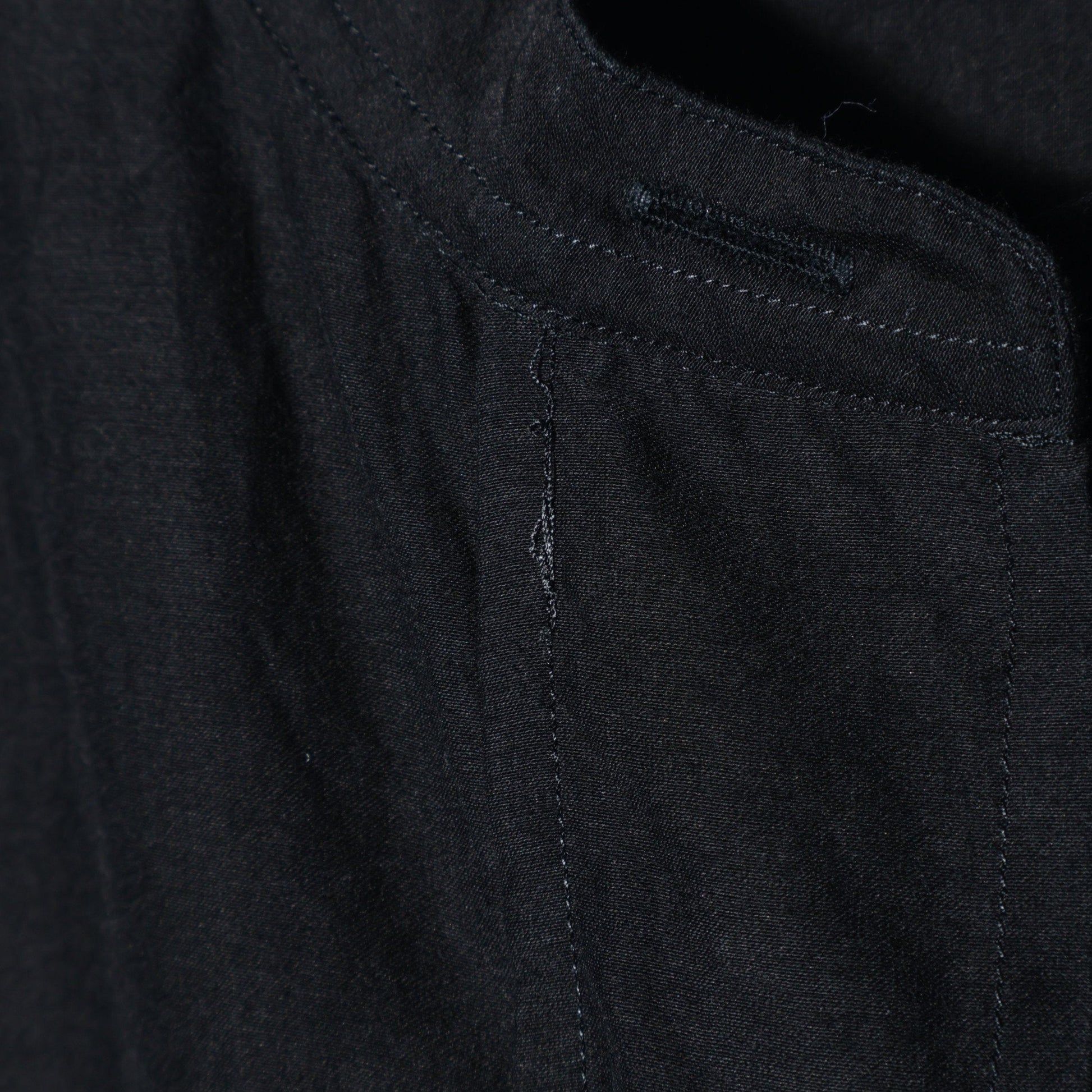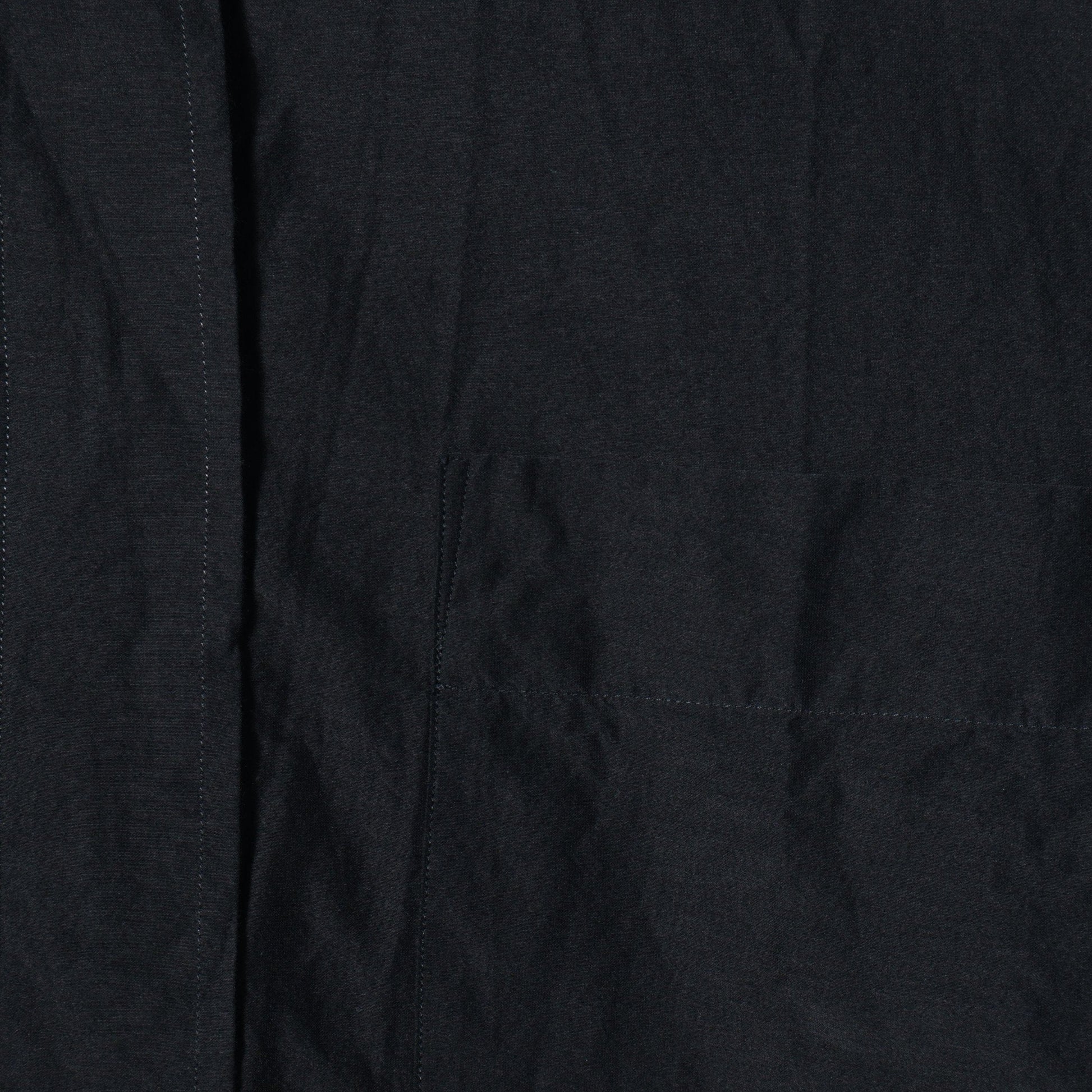 張りと透明感のあるコットンとシルクの交織素材使用したシャツ。製品洗いを施したラフな表情が特徴的。ゆとりある設計のボディに大きめのアームホールや、ドロップしたダブルポケットのデザインがポイント。