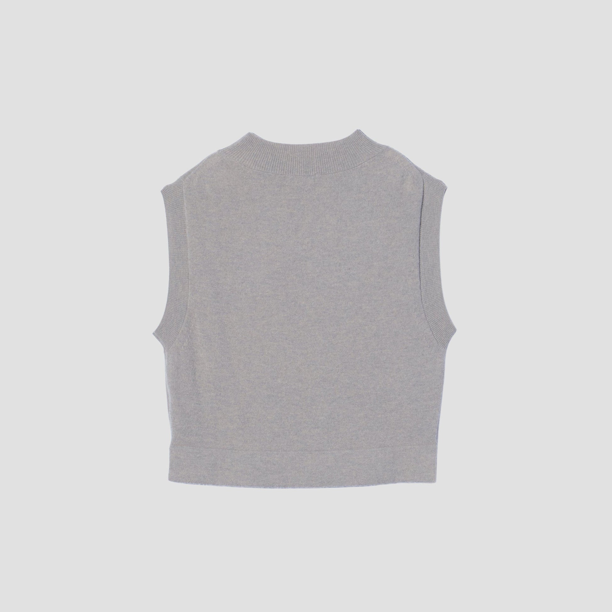 素材本来の柔らかく優しい風合いを引き出したウールカシミヤ素材のニットベスト。衿はリブのモックネック、アームホールはシャツと合わせやすいように大きく開けたデザイン。