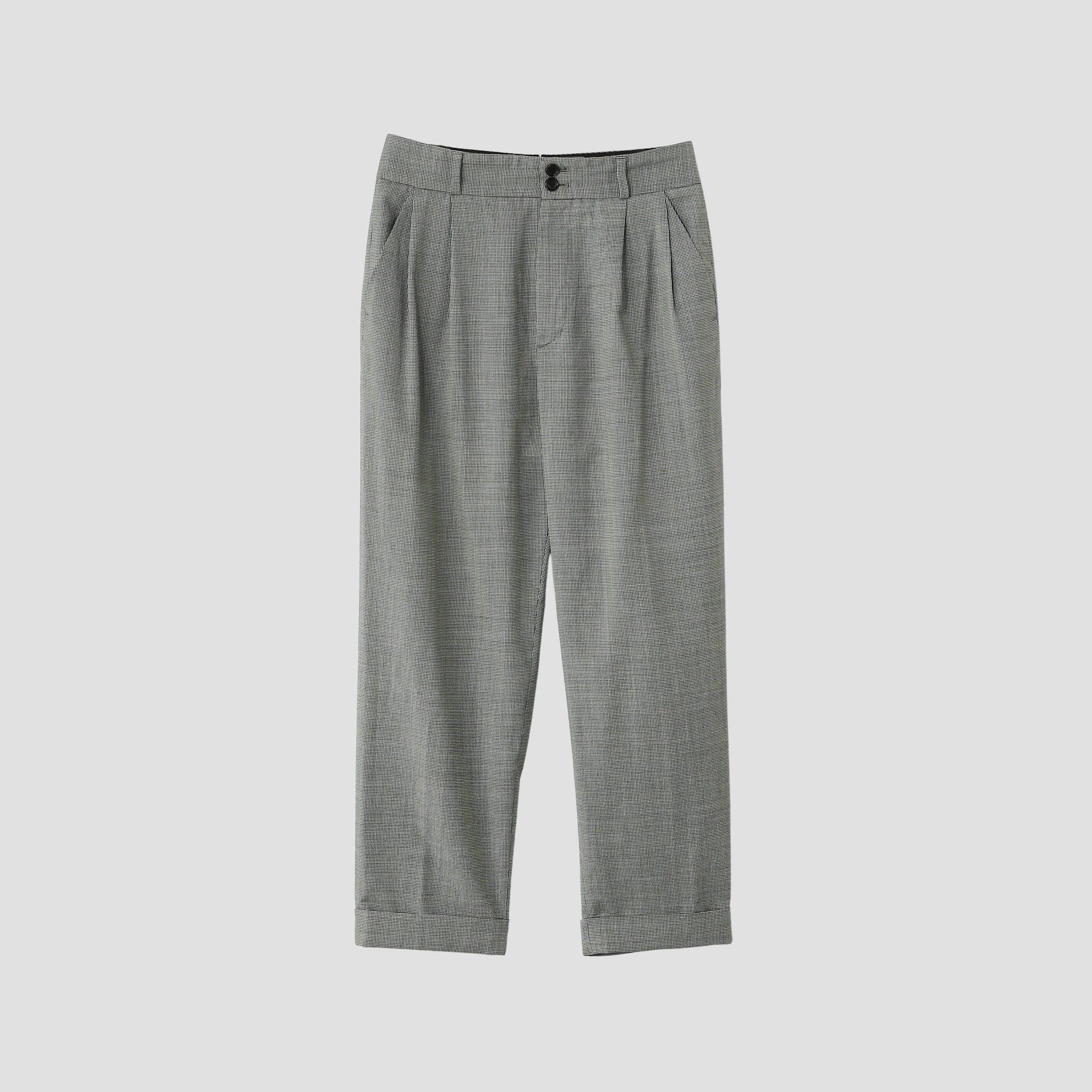 ウール素材のトラウザーズ。千鳥柄。