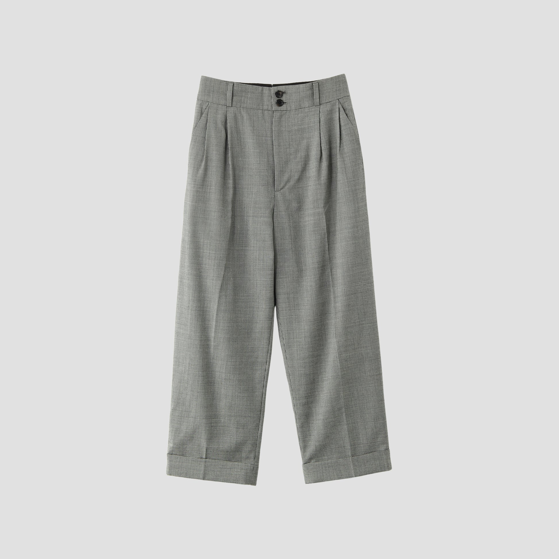 ウール素材のトラウザーズ。千鳥柄。