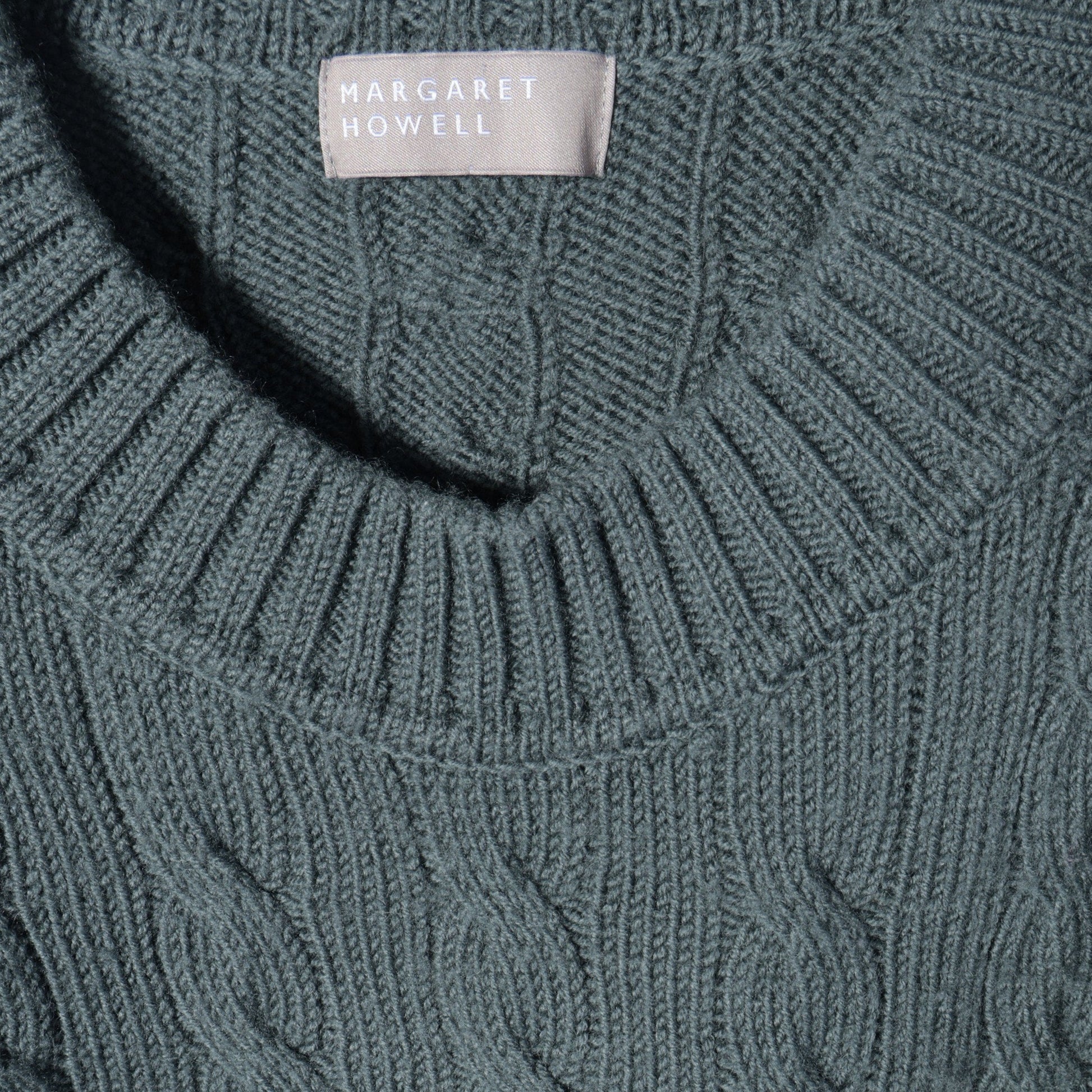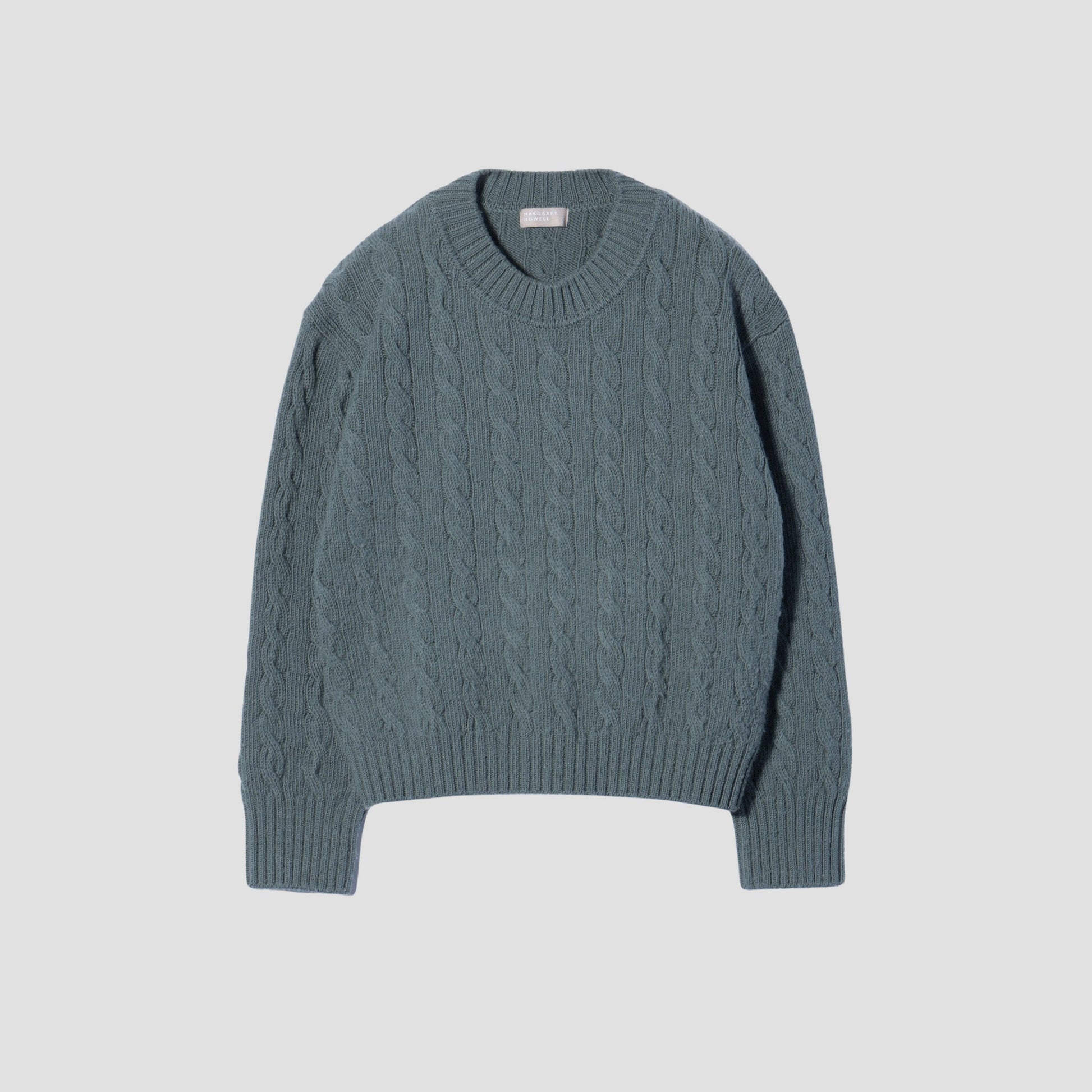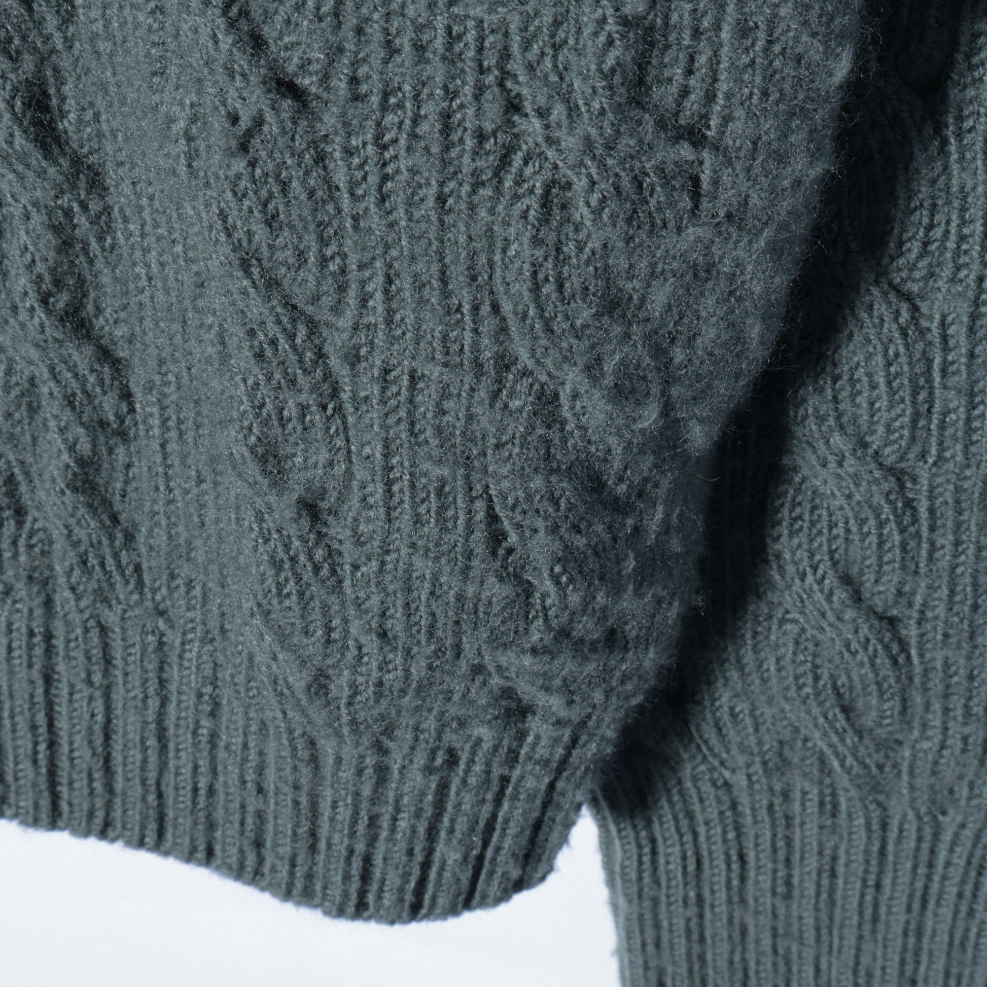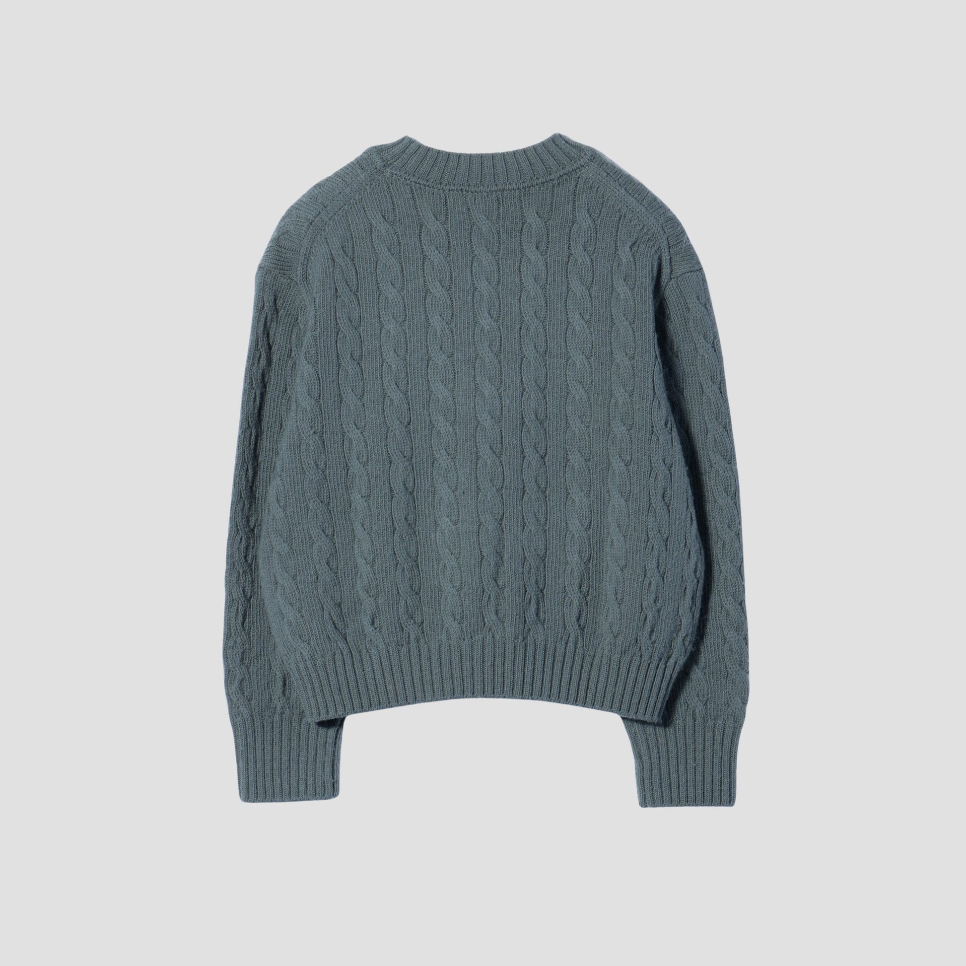 柔らかく、膨らみのあるウール素材を使用したクルーネックのニット。はっきりとしたケーブル柄が特徴で、暖かく着心地の良いアイテム。