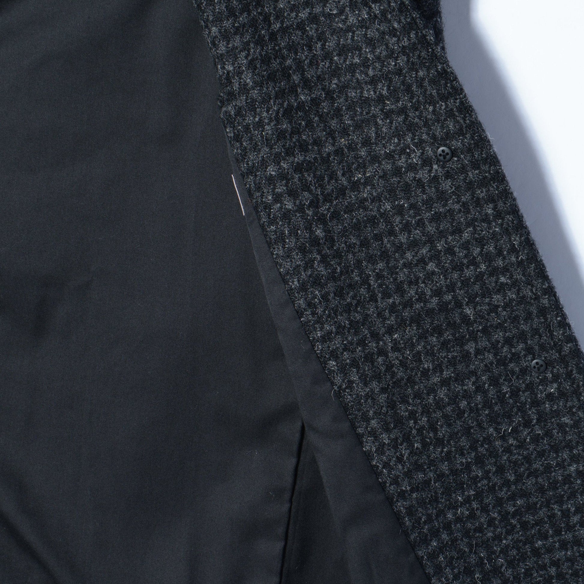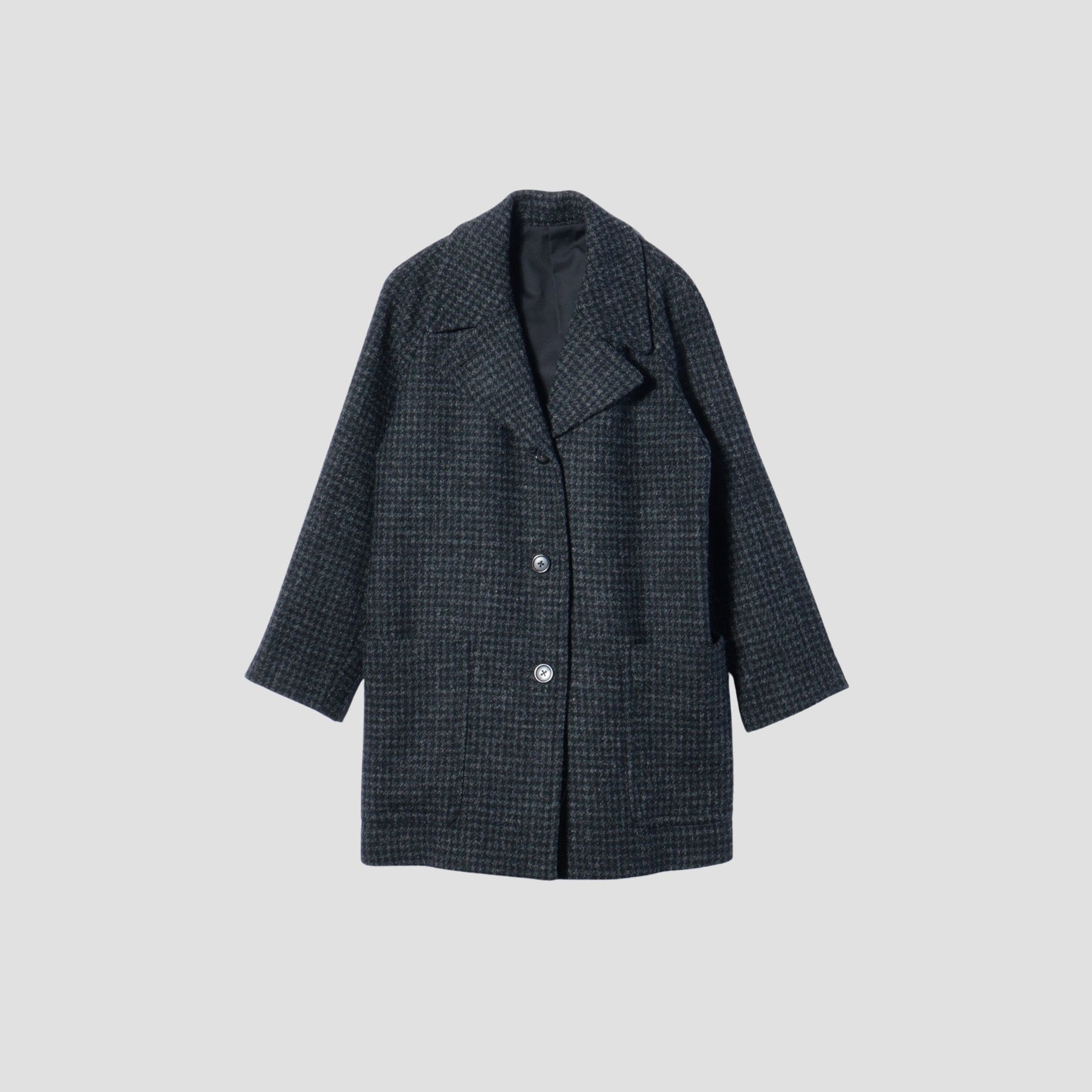 ドッグトゥース柄のハリスツイードを使用したチェスターコート。