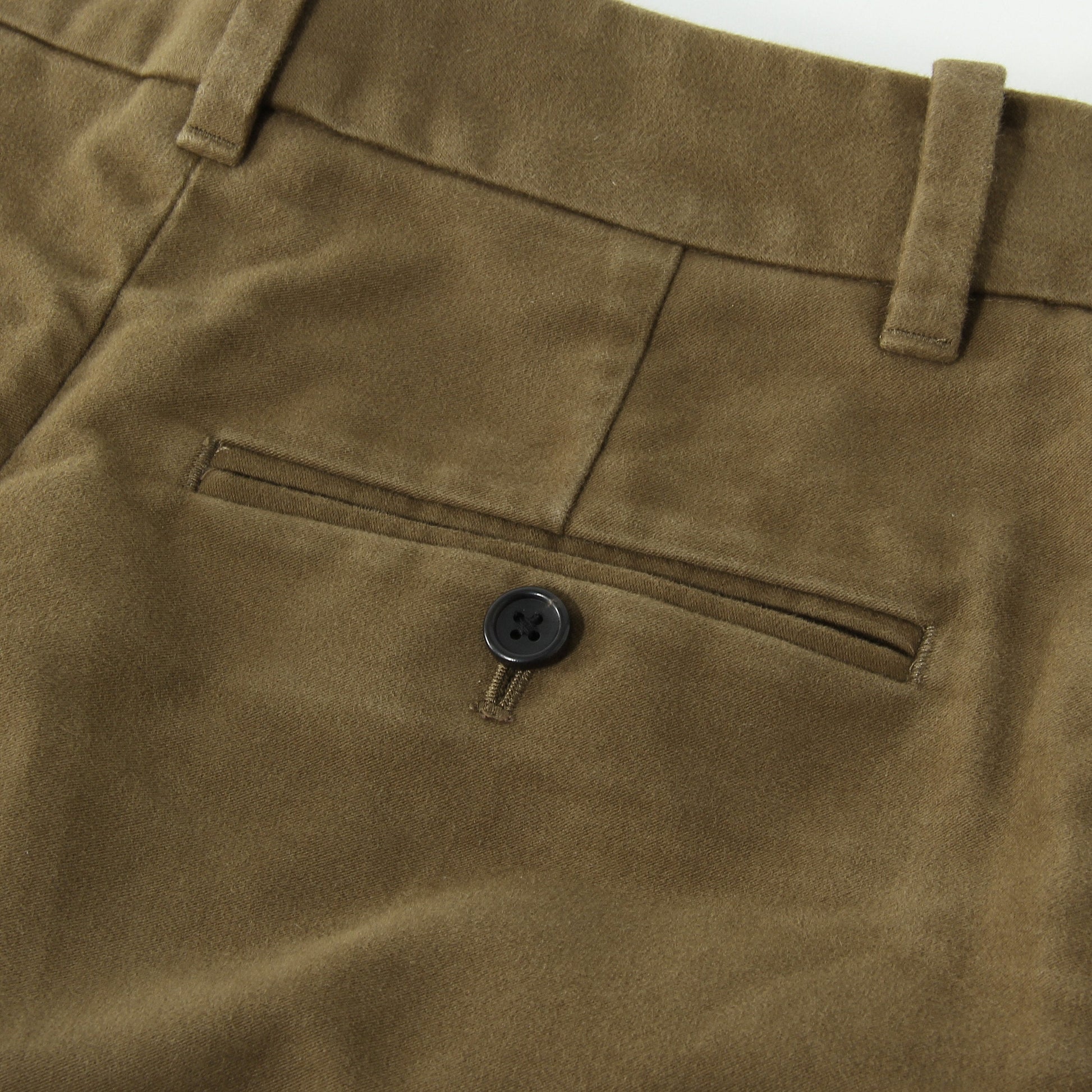 しっかりとした打ち込みのあるモールスキンのトラウザーズ。